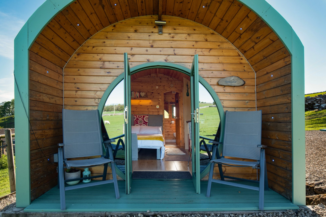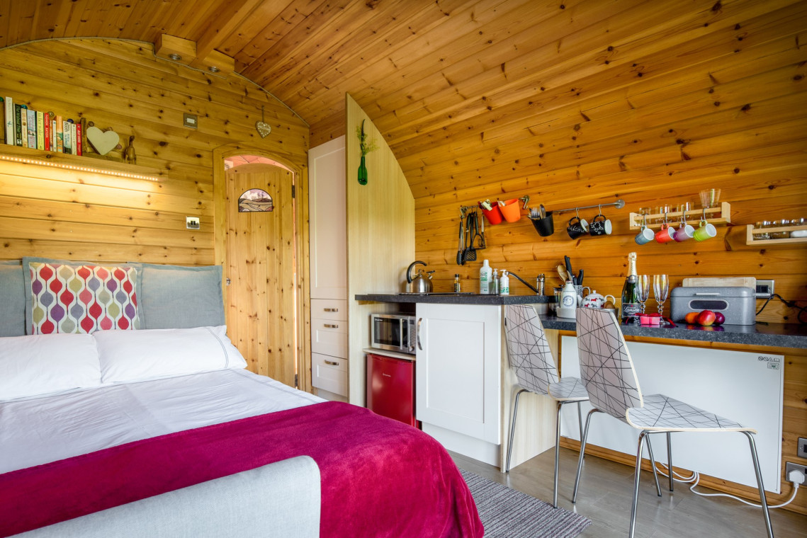 My wife Lorna and I, along with our exuberant yet ageing Border Collie Drift, jumped in the car and made the relatively short 40-minute journey from Chesterfield. Nestled between Ashbourne, Bakewell, Matlock and Buxton, Hoe Grange Farm is ideally situated to use as a base and explore the surrounding picturesque villages and towns. From the initial enquiry through to the booking process and then arriving at Hoe Grange, the communication between myself and owners Felicity and David Brown was quick and clear and included helpful directions and a handy sitemap too. We opted for one of the luxury glamping pods – perfectly sized for two adults and a Collie. When we arrived, we were blown away; a beautifully furnished pod, which for its size included everything you could need or think of. My wife Lorna said: “Wow, they’ve really thought of everything!”