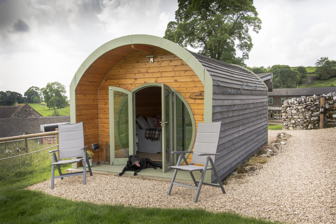 Award winning log cabins and gorgeous glamping pods on a working farm with stunning views over the Peak District countryside - plenty of wonderful dog walks from the door.