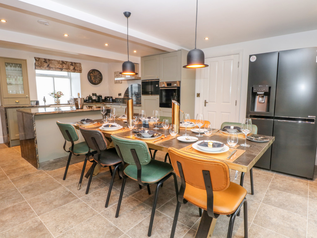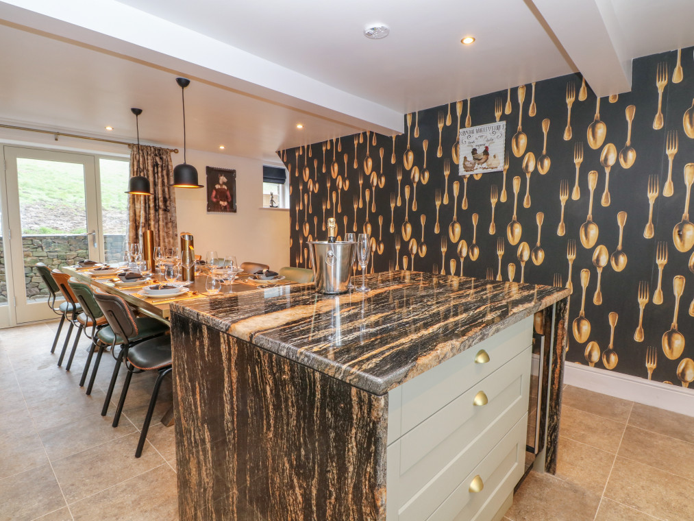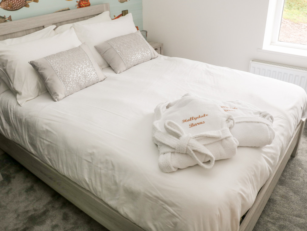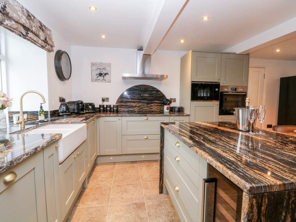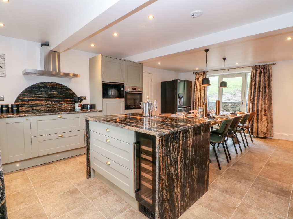 Leek 3.3 miles. Nestled within striking distance of the majestic Peak District National Park is the superbly-appointed barn conversion, Holly Dale. This spacious accommodation has been designed perfectly for a special gathering with family and friends, as well as an opportunity to explore the surrounding countryside setting. Be impressed by the wonderful blend of character and contemporary, with the original features complementing the sleek and stylish furnishings. Rustle up delicious meals within the elegant kitchen before toasting to a wonderful break at the dining table. From here, move through the property and sink into the sofa within the sitting room which rests in front of a warming woodburning stove and board games. Make your way upstairs where you will find three sumptuous bedrooms which all have en suites, and are all kitted out with everything you need for that authentic home from home experience including smart TV's, fluffy bathrobes, hair straighteners and hair dryers in every room, on this floor you can also enter through the gnome door into the gaming den which has a PS4 and gaming chairs, on the top floor you will find the master suite, luxury at its finest featuring a king size bed, smart TV and a show stopping en suite. Continuing to impress is the outdoor area, where you can choose to dip into the hot tub, relax in the sauna or host evening meals cooked on the gas BBQ next the heated luxury thatched garden hut, perfect for relaxing, dining and playing games. Alternatively, while away a few hours within the external games room, complete with a pool table, table tennis, karaoke machine and classic arcade console featuring 60 of those retro favourites we all know and love. An impressive retreat for your next family adventure. Note: This property can be booked with Refs. 1001734 and 957753, together sleeping up to 20 people. Over three floors. Four bedrooms Top floor master suite: 1 x king size bed with large en-suite walk-in rain shower, couples bath, basin and WC, 1 x super king-size bed (zip/link beds, can be made into twins on request) with large en-suite bath, walk-in shower, basin and WC, 1 x double with en-suite shower, basin and WC, 1 x king-size bedroom with en-suite shower, basin and WC, all bedrooms have a smart TV. First floor gaming room with PS4 and gaming chairs. Cloakroom with basin and WC. Kitchen/diner with underfloor heating and smart TV. Utility room with washer, drier and sink unit. Sitting room with woodburning stove and large selection of board games. Games room with pool table, table tennis, arcade games, karaoke, darts and book exchange. External sauna. Heated thatched garden hut. Amenities for Rental Gas central heating and woodburning stove Induction hob, electric oven, wine cooler, dishwasher, fridge/freezer, microwave, WiFi, Smart TV Fuel and power inc. in rent Bed linen and towels and bathrobes inc. in rent Hairdryers and hair straighteners Ample off-road parking Patio area with relaxing garden chairs and bean bag, hot tub, sauna, gas BBQ and thatched heated garden building Garden games, croquet badminton and swing ball Travel cot and highchair available on request Stair gates are fitted at tops of stairs Two pets welcome Sorry, no smoking allowed Shop 2.3 miles and pub 1.8 miles Note: Stairs to second-floor are steep, care to be taken Please note that there is a Good Housekeeping Bond of £125 for this property