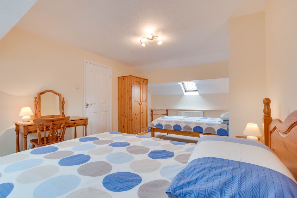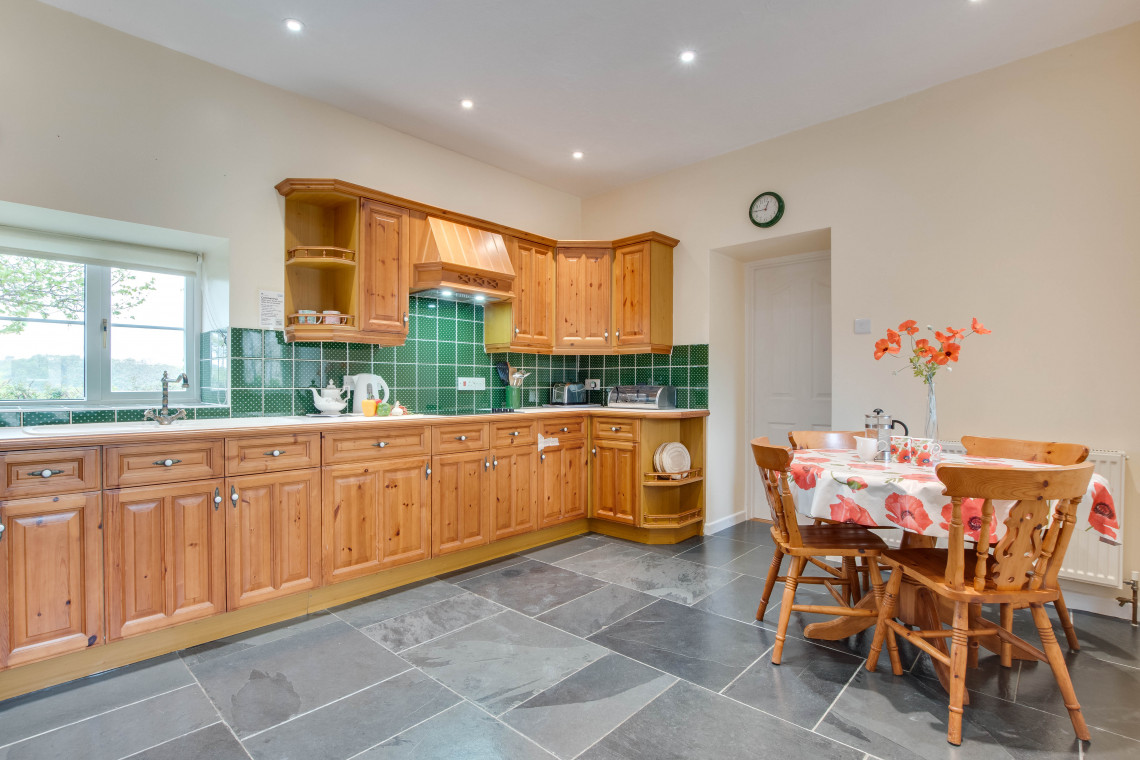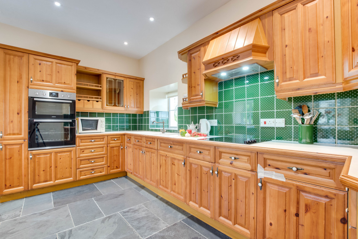 - Utilities: Electric oven and hob, microwave, larder fridge, freezer, washing machine, tumble dryer