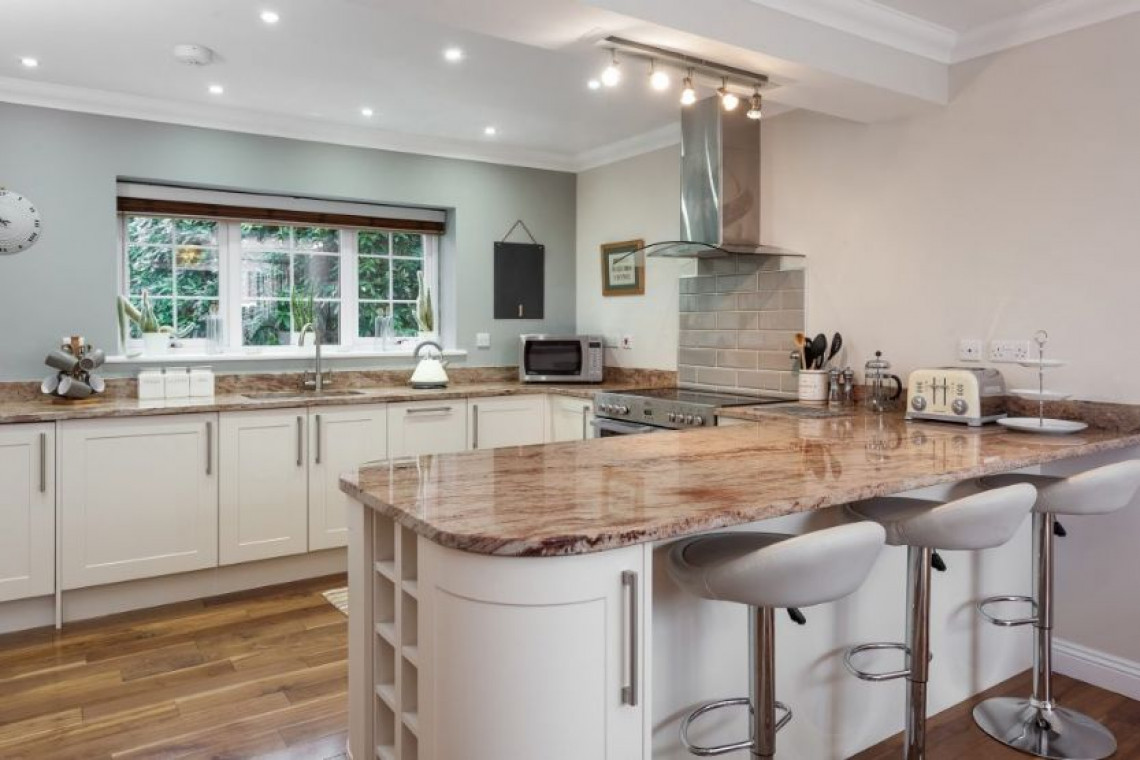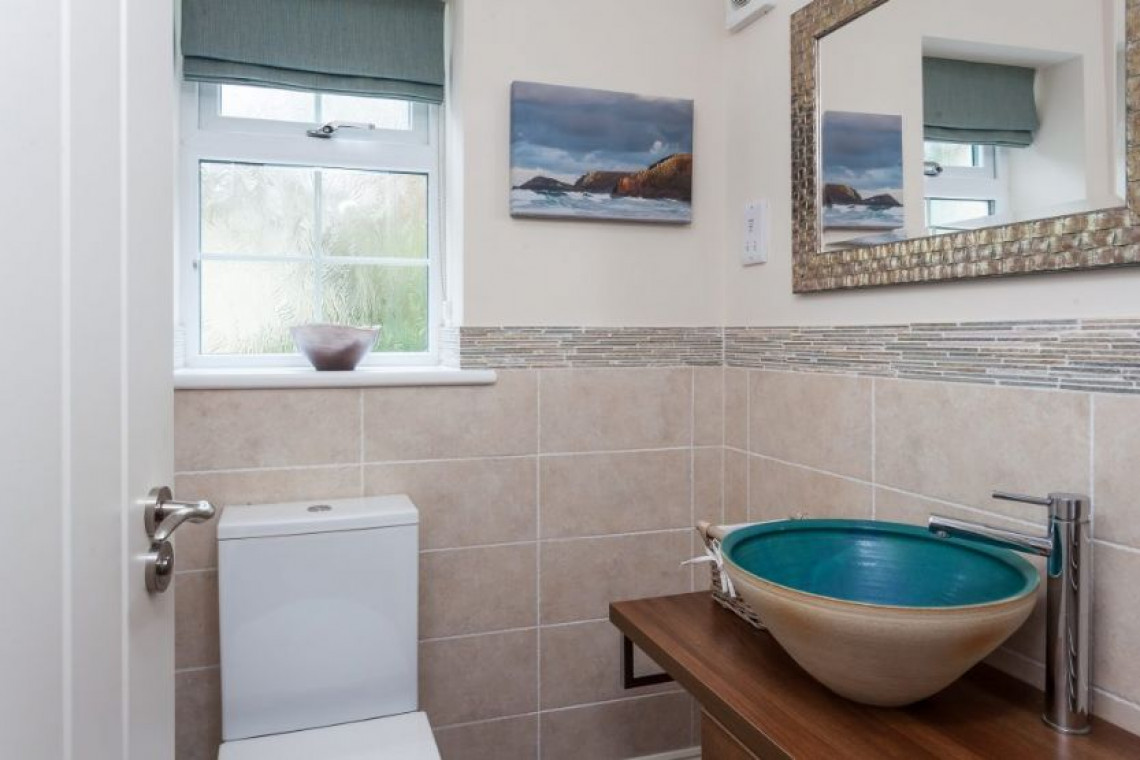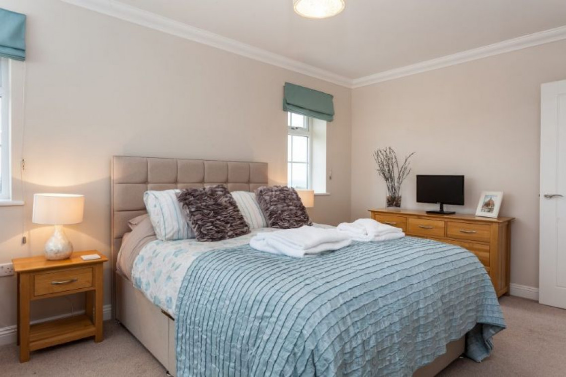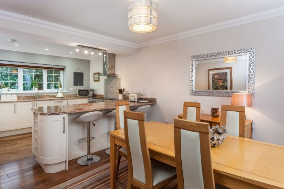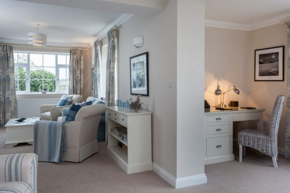 The beautiful blend of modern living and cosy character is evident in all rooms, and the generous windows allow the natural light to flood in and take full advantage of the splendid views. The sitting room has a small study area, triple aspect windows along with Sky television and a DVD player. The open-plan kitchen and dining area is simply stunning with granite tops, high quality appliances and a double oven range cooker. There are french doors from the dining area onto the patio and garden.