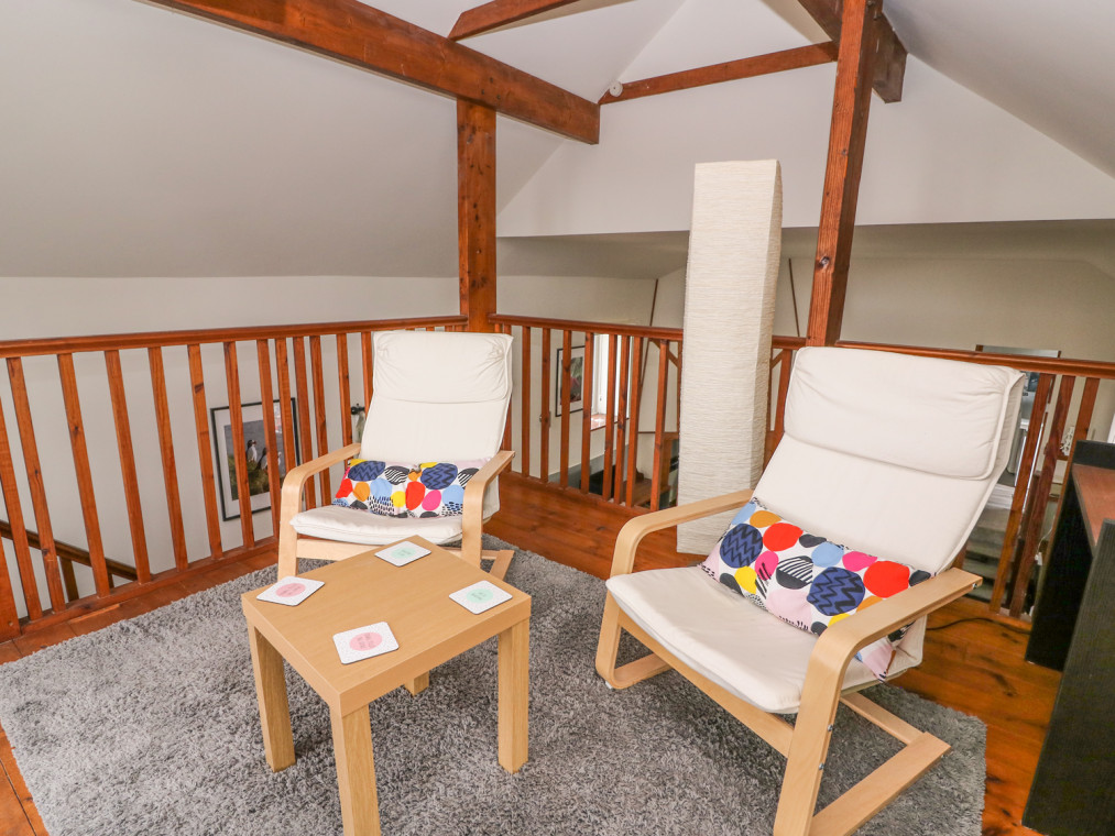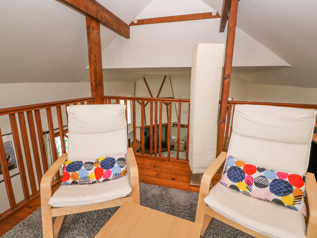 Two bedrooms: 1 x king-size double with en-suite shower, basin and WC, 1 x ground floor twin (zip/link can be super king-size double on request). Ground floor shower room with basin and WC. Kitchen/diner. Sitting room. Conservatory. Small seating area, that opens onto the balcony on mezzanine