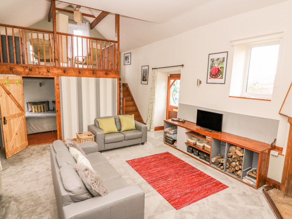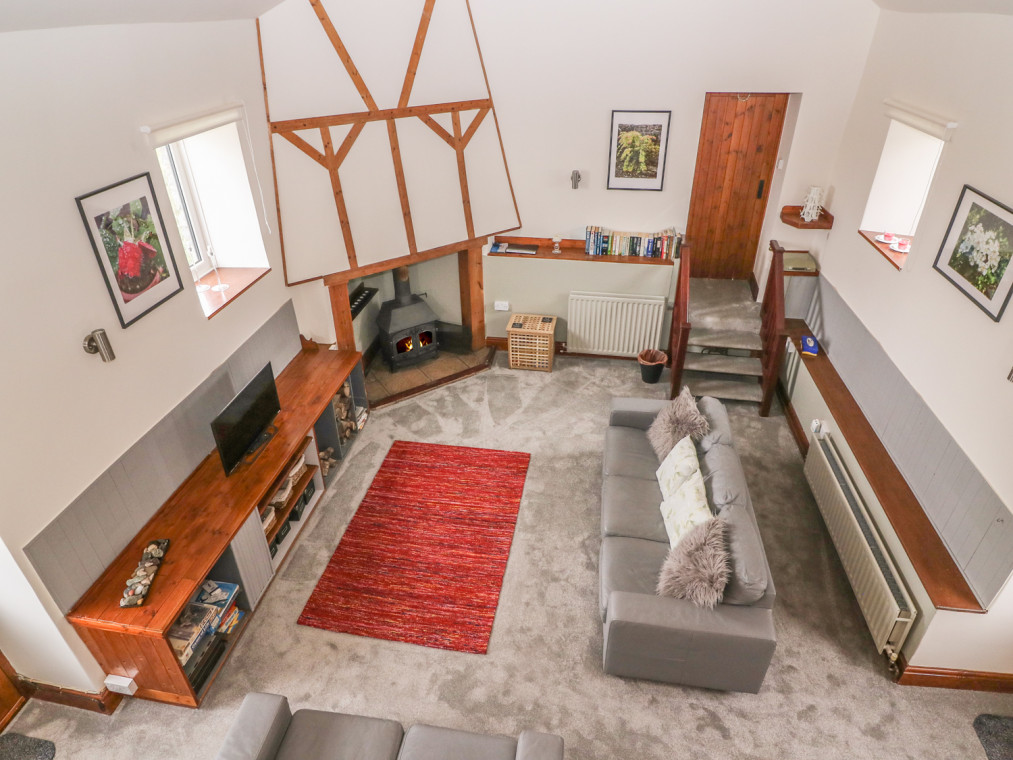 Aberaeron 4.5 miles. A lovingly converted barn situated adjacent to the owner’s smallholding in Ciliau Aeron with stunning views across the Aeron Valley, just a short drive from the popular harbour side town of Aberaeron. Providing flexible accommodation, this is a perfect base for family and friends who are looking for somewhere tranquil to retreat to where they can soak up the views after a day exploring the fantastic beaches of Cardigan Bay. The large galleried sitting room is a cosy space to relax in front of the woodburner in the evenings. On the mezzanine level is a seating area which has doors opening out to a terraced balcony where you can take in the breathtaking valley views. Up four steps from the sitting room is the newly fitted well-equipped kitchen/dining area which leads to a lobby with access to a shower room equipped with shower gel, shampoo and conditioner dispensers. There is a ground floor twin bedroom which can be a king-size double on request and on the first floor is a large king-size double with en-suite facilities which is accessed via stairs from the lobby. Completing the accommodation is the fantastic benefit of a rear conservatory which can be enjoyed no matter what the weather. Outside, you can sit in the lawned garden or relax with a glass of something cool on the balcony and watch the sun go down. This cottage is in a fantastic location within very easy driving distance of Aberaeron which is a charming coastal town. There are a number of different walks on offer, National Trust properties, the Cors Caron National Nature Reserve and the seaside resorts of New Quay, Lampeter and Aberystwyth are well worth a visit. With all this and more, Horseshoe Cottage provides a fantastic base.