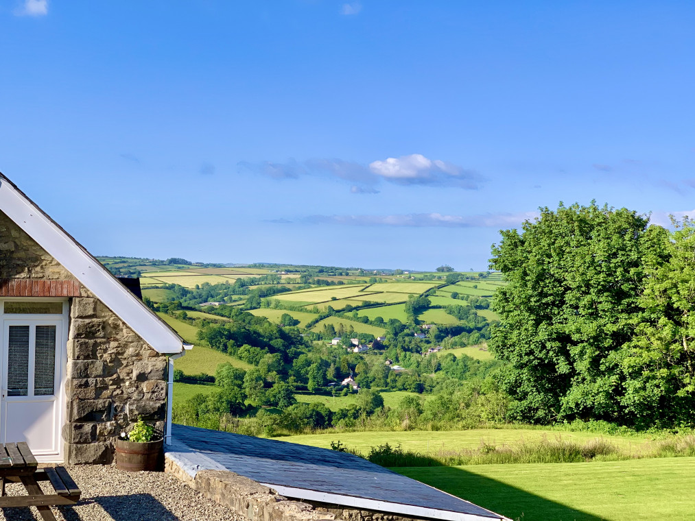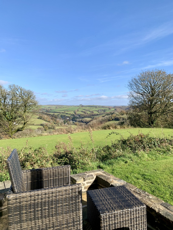 Spacious, bright cottage with stunning valley views. Cosy log burner, well-equipped kitchen/diner, large bathroom with bath & shower. Bedroom opens to a private patio. Lounge balcony and private decking with hot tub. Walks from the door and nearby beaches, attractions, and activities.