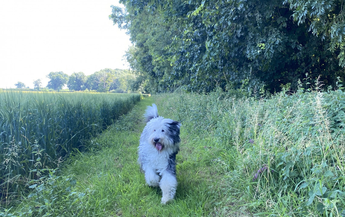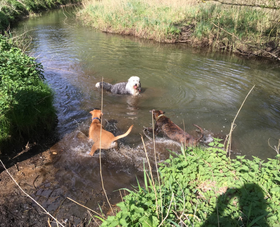 Fully fuelled, we set off on a four-mile walk. There are six circular walks of different lengths in the area to try, all prepared by the local pub, and laminated copies are available in the welcome pack. We chose the Botesdale Loop, which from Redgrave crosses the valley by streams and open fields and into the village of Botesdale. We didn’t see a soul for most of the walk and enjoyed the views and peacefulness of the surroundings. Woody had the freedom to explore, paddling in a few streams, getting muddy and avoiding his favourite pastime of fox poo rolling for at least the first half of the walk.
