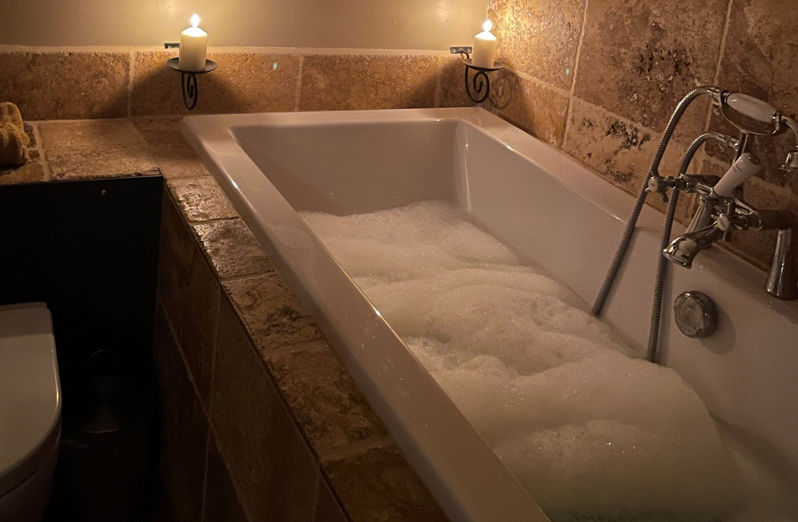 As predicted, this gave us an opportunity to try out the doggy bathtub in the garden on our return. There’s a handy mixer tap so although Woody wasn’t exactly pleased, it was warm water and the shampoo provided was strong enough to combat even fox stink. The back garden is fully enclosed with high fences, and during our visit the blossom tree was glorious in full bloom. The bees were taking advantage of the insect houses dotted about and there is also a hedgehog house in the front garden. It seems that Yew Tree Cottage has an open-door policy to creatures great and small.