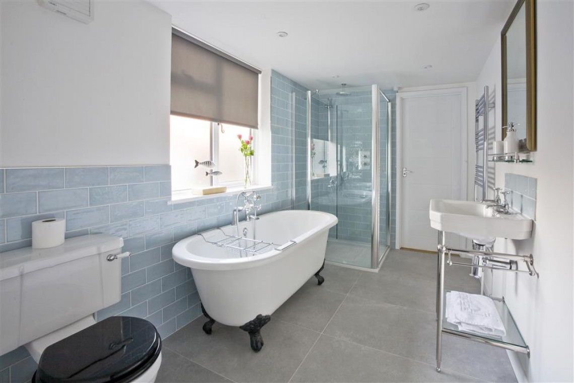 Bathroom: Jack and Jill style bathroom. Double-ended roll top bath, large glazed shower cubicle with rain head shower, WC, hand basin, heated towel rail.