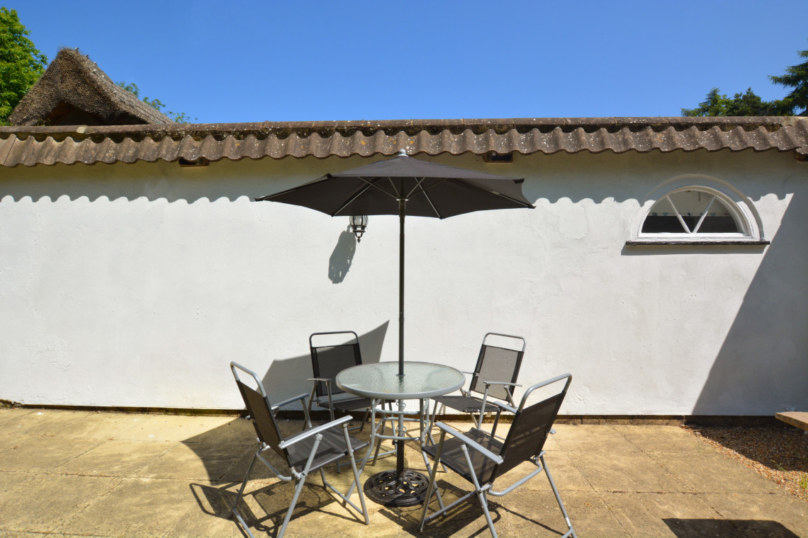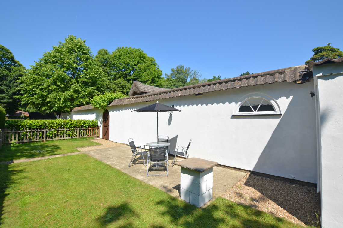 - Outdoors: Fully enclosed garden with table and chairs
