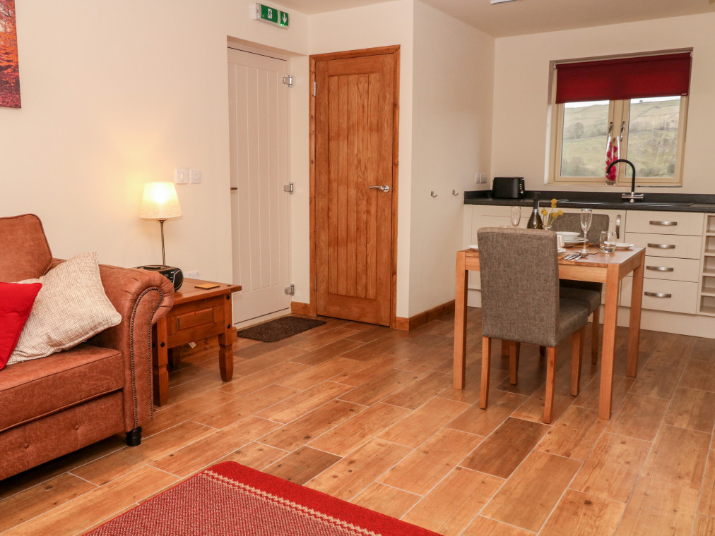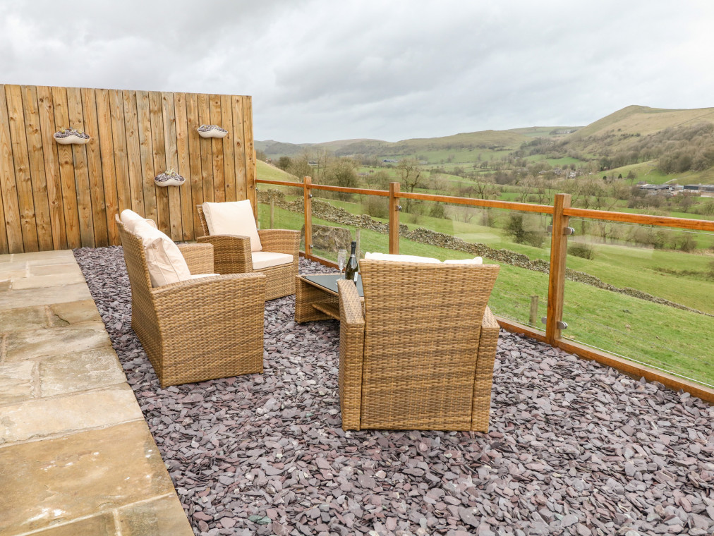 Seek relaxation with your loved one in this rural retreat in the heart of the Peak District, settled on the owner's working farm, Kestral Cottage is a ground-floor detached and homely dwelling. Appreciate uninterrupted views from your private terrace to the rolling countryside beyond and feel the benefit of this rural location, whilst still being within close reach of the amenities of Longnor village. Thanks to the underfloor heating beneath the ceramic tiles you can feel warmed while you relax within the open-plan living space during your down time, settling onto the classic leather L-shape sofa while the feature electric fire adds a homely aura while you watch a film on the TV. The cream kitchen units hold all the appliances you need to cook some homemade meals with an electric oven and hob, microwave and fridge/freezer, as well as a dishwasher so no dishes need to be done on your holiday! Take pleasure in dining together whilst tucking into a lovingly-prepared meal, or grasp the opportunity in warm weather to dine alfresco on your private terrace while your canine companion rests by your side, as you share the magnificent views of the surrounding natural beauty. Unpack your belongings within the attractive double bedroom adorned with solid wood furnishings providing a farmhouse feel, as well as being bright and airy thanks to the glass patio doors which lead out onto the terrace. Wake up to a refreshing shower within your en-suite shower room, so you only need take a few steps before you can begin your day well within this immaculate space. Embark on a walk to explore your surroundings and encounter High Wheeldon, a distinctive dome-shaped hill near the Staffordshire/Derbyshire border, incorporating nearby Chrome Hill and Parkhouse Hill if you want to extend your travels, and experience some fantastic views of the unspoilt landscapes. Explore the historic spa town of Buxton and see as many fantastic attractions as possible; Poole's Cavern offers tours around the extraordinary subterranean limestone caves, Go Ape Buxton is a treetop adventure for those who love a challenge and want the thrill of heights and zip-wires, while the Buxton Museum and Art Gallery can offer insights into the town’s rich history. A stroll around The Pavilion Gardens will feel like going back in time, as well as a walk along the famous Buxton Crescent and past the Buxton Opera House. Over towards Bakewell is the stunning Haddon Hall, holding over 900-years of history it has survived all that history has thrown at it, with a Medieval chapel with 15th century frescos, Elizabethan Walled Gardens, all set in the picturesque setting of River Wye valley, it is a fantastic day out. For an outdoor adventure with your loved one, stay at Kestrel Cottage for an inspiring rural escape. All-ground-floor. One double bedroom with en-suite shower, basin, and WC. Open-plan living space with kitchen, dining area, and sitting area with electric fire Amenities for Rental Electric underfloor heating throughout with electric feature fire Electric oven hob, microwave, fridge/freezer, dishwasher, TV, and WiFi Fuel and power inc. in rent Bed linen and towels inc. in rent Off-road parking for one car Enclosed slate terrace with seating One well-behaved dog welcome Sorry, no smoking Shop and pub within 0.9 miles