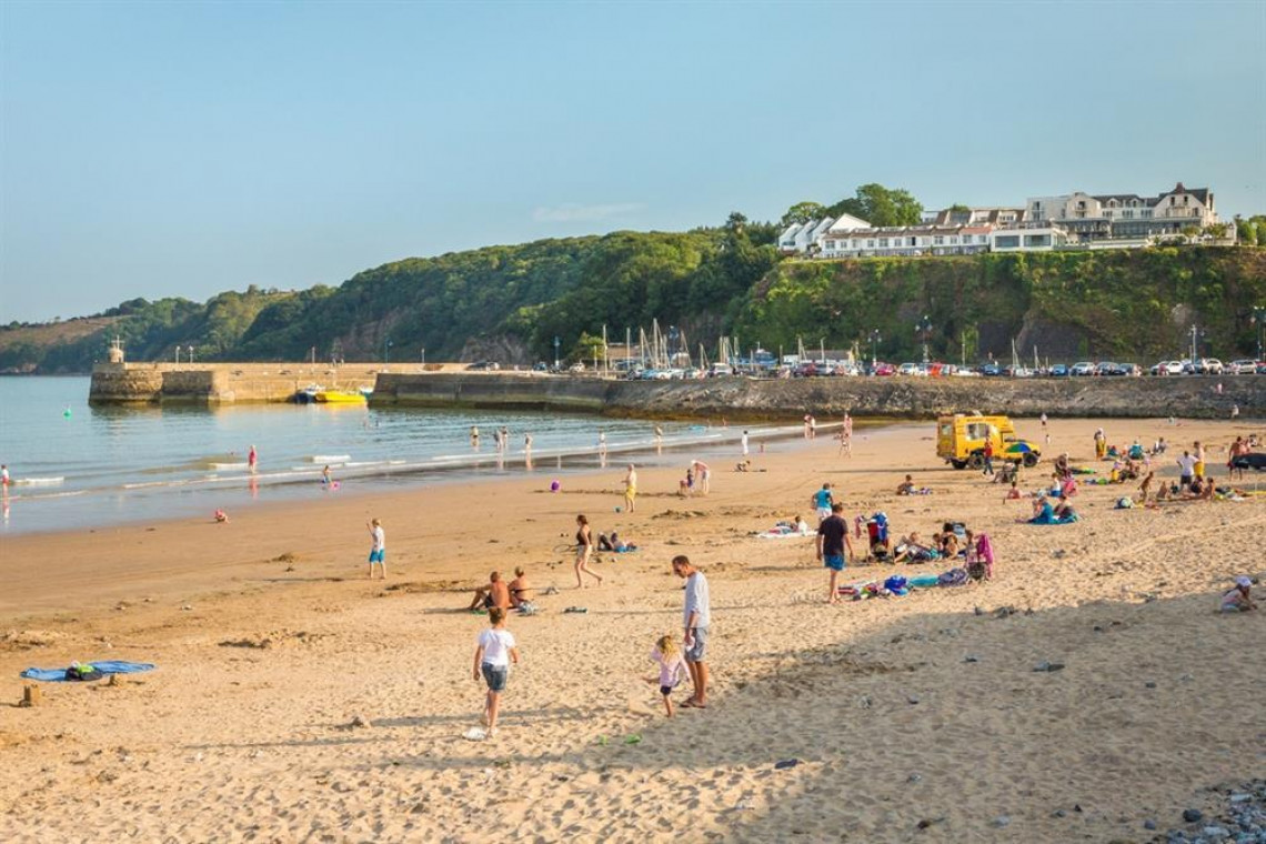 A superb, beautifully spacious, four bedroom beach-front property with private patio garden and amazing sea views over Saundersfoot beach and coastline beyond.