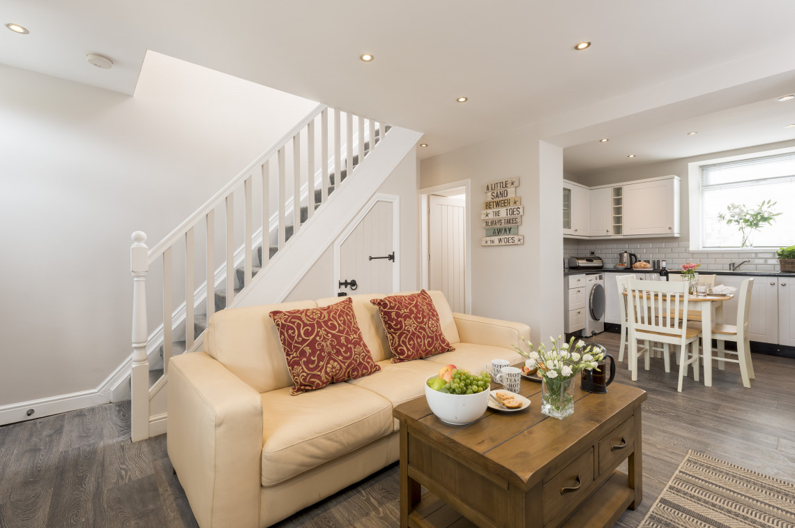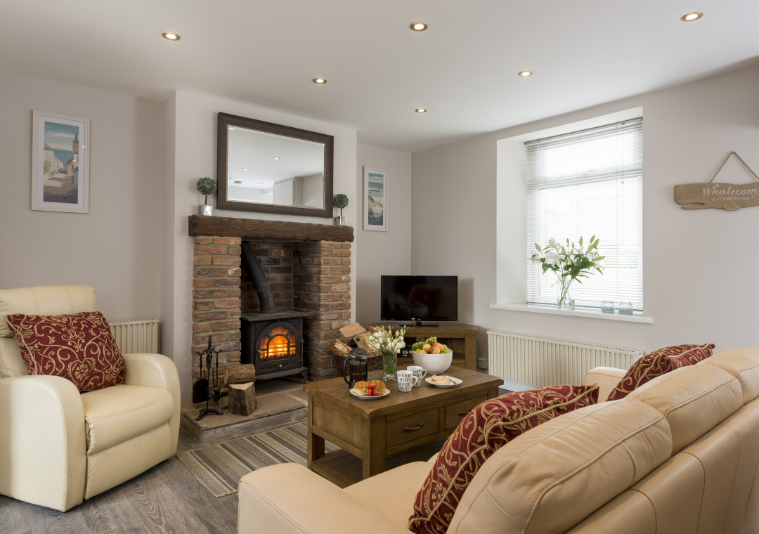 Kurnell Cottage is a lovely two-bedroom cottage, newly refurbished and decorated, located in the upper part of the picturesque fishing village of Staithes in the North York Moors National Park. On the ground floor the open plan sitting room is well furnished with a fantastic wood burning stove (starter pack of logs, kindling matches etc provided in winter months), a 30” Smart TV, DVD player and lovely comfortable sofas. This opens into a well-equipped kitchen with a dining table and chairs to enjoy meals together. The kitchen has an electric oven and hob, a tall fridge/freezer, dishwasher, washing machine and microwave. There is also a cloakroom with WC and hand wash basin. On the first floor, there is a master bedroom with a king-size bed, free-standing wardrobe and 40” TV. The second bedroom has a double bed and a 24″ TV. The smart bathroom has a bath with electric shower over, WC and hand wash basin To the rear of Kurnell Cottage is a patio with a table, chairs and parasol; there is also a private parking space. Amenities for Rental