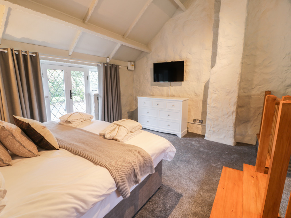 Llanrug 1.5 miles. Lakeside Cottage is a wonderful detached cottage located in the foothills of Snowdonia, set in a fantastic lakeside position, within its own grounds and gardens, and comes complete with its own private jetty. Tucked away within the secluded and luxurious 5 star Brynteg Park, the cottage itself is very private, accessed along its own sweeping drive, and is a very special place for families, couples and friends alike who want to enjoy some fantastic times together. The cottage is well equipped and the accommodation spacious, accentuated by high ceilings and French doors which give the wonderful garden and lake views - perfect for those sunny days. The living accommodation and bedrooms are all well-appointed, tastefully decorated and designed with comfort in mind. The spacious sitting room is a perfect place for everyone to relax after a busy day, with a wonderful open fire creating a relaxing atmosphere. The dining area is ideal for a family meal together, all prepared in the well-equipped kitchen, which has plenty of storage, work surface space and a great cooking range, ensuring all your needs are catered for. Arranged on the ground floor are two bedrooms; a king-size and a master bedroom, boasting a super king-size bed, sitting area and en-suite shower room. There are two further bedrooms situated on the first floor, another boasting a super king-size bed with lake views and a lovely single room, also with lake views. There is also a well-appointed family bathroom located on the ground floor, with the addition of a first floor cloakroom for the convenience of the upstairs bedrooms. After the day's adventure, Lakeside Cottage is wonderful to return to where you can relax in the hot tub, ideally located on the patio and star gaze long into the night. The gardens are a wonderful place for the children to play or to take a relaxing stroll through the meadow. A path leads around the lake, where you can access Brynteg Park and enjoy a drink or two at the country club and bar or perhaps a meal at The Boathouse Italian Bistro with lake views. Brynteg Park offers great on-site facilities including a state-of-the-art gym, swimming pool, spa and beauty lounge for the ultimate in pampering luxury. If exploring Snowdonia National Park isn’t for you, Brynteg’s leisure facilities also include tennis courts, water sports facilities and more, keeping your whole family entertained. There are kids’ clubs and entertainment, wonderful gardens and woodland walks, all on-site for your enjoyment. You can also go off site and visit the many attractions the area has to offer, such as the nearby towns of Bangor and Caernarfon, with its majestic heritage castle. Why not also explore Llanberis, the gateway to the peak of Snowdon or the popular, mile-long zip wire at Bethesda? The nearby North Wales coast and the beautiful sandy beaches and rocky coastlines of the Llyn Peninsula and the Isle of Anglesey are within easy driving distance. There is so much to see and do with the choice of outdoor activities on offer in this area, and then enjoy returning to the comfort of this delightful property at the end of a busy day. Over two floors. Four bedrooms: 1 x ground floor super king-size (zip/link, can be twin on request) with sitting area and en-suite shower room with shower, basin and WC, 1 x ground floor king-size, 1 x super king-size (zip/link, can be twin on request), 1 x single. Ground floor bathroom with bath, shower over, basin and WC. First floor cloakroom with basin and WC. Kitchen. Sitting room with dining area and open fire. Amenities for Rental Oil central heating and open fire Electric oven and hob, microwave, fridge/freezer and dishwasher. 4 x Smart TV's, DVD player, WiFi, selection of books, games and DVD's Fuel, power and starter pack for open fire inc. in rent Bed linen, towels and bathrobes inc. in rent Highchair and travel cot available on request Off road parking for 3 cars Patio with private hot tub, large gardens and meadow with private access to private pontoon and lake, Secure storage for bikes by arrangement Shared on-site facilities including indoor heated swimming pool, gym, sauna, steam room and spa, children's adventure park and soft play area, as well as a children's and adult entertainment programmes Two well-behaved dogs welcome (not in bedrooms, please bring own dog beds, blankets and towels) Sorry, no smoking Lake 1 min walk Holiday park facilities, Country club, bar and restaurant and Italian bistro 10 mins walk from cottage Note: There is open water and a stream within the grounds of the cottage Note: Children must be supervised at ALL times in the hot tub, gardens and at the lakeside Note: The staircase is slightly steeper and narrower than normal Note: Whilst most of the accommodation is ground floor, there are one or two internal steps Note: All park facilities are fully available, all year round and free of charge to guests staying at the cottage, with a 50% discount offered on all activities Note: This property has a private water supply.