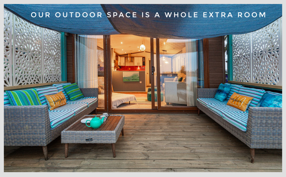 With stunning views over the lake, the stylish living space has 2 sofas - a 3 seater and a 2 seater. with a full size single click clack in this space, The Retreat sleeps 5 comfortably. Air conditioning, a smart TV and complimentary WIFi all contribute towards this being one of your best holidays.