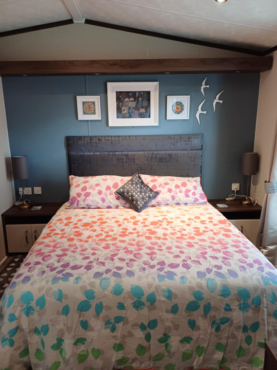 There is off road parking for 2 cars right outside the lodge. Unload your car, and you will soon be impressed with the quality of this contemporary lodge. Designed for all year round living, with double glazed windows, central heating, air con, and super squishy throws, what could be better than watching storm clouds gather across the lake while you are safe and warm inside?