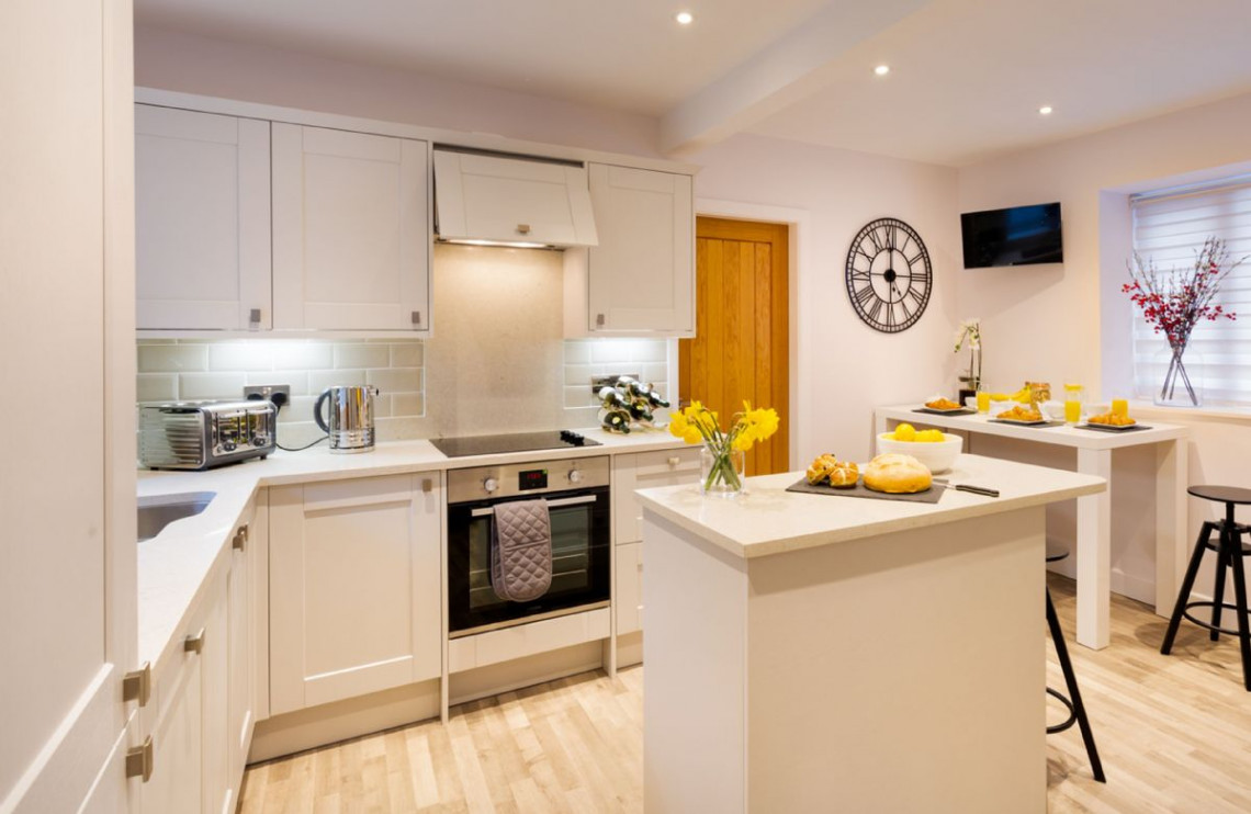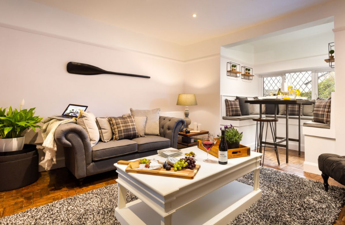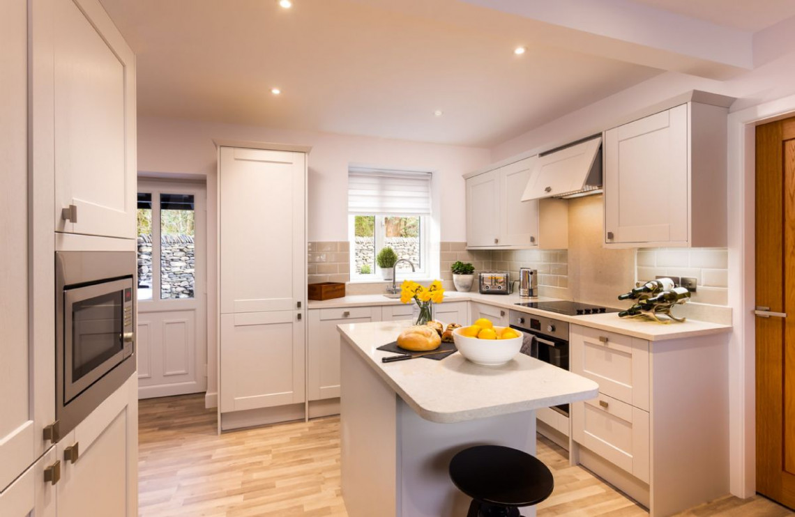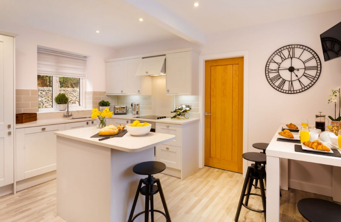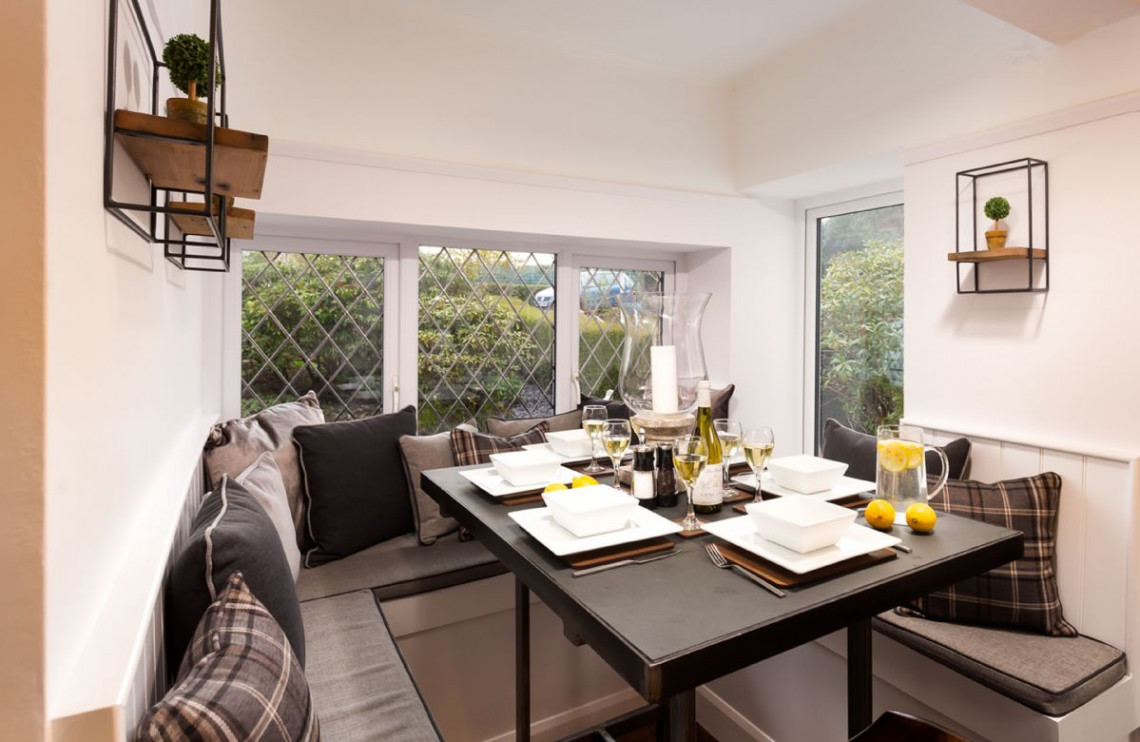 Just 500 metres from Lake Windermere, Lexington House is a superb detatched property with contemporary luxuries like chesterfield sofas, a bespoke slate dining table and a breakfast bar. This superbly restored property is as stunning as its location. Lexington House puts you right next to one of the most iconic lakes of the Lake District, not to mention the bustling village of Bowness-on-Windermere, with its shops and restaurants. Yet behind the front door is a haven of tranquillity, with large chesterfield sofas to relax into and lots of home comforts like a wood-burning stove. The slate top dining table set into the bay window is a particularly unique and attractive feature.