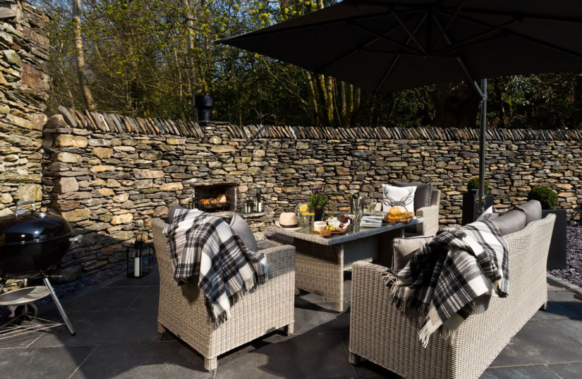 To the rear of the property is a secluded large patio, with comfortable outdoor furniture and a feature fireplace. It’s the perfect spot to rest those legs after a day spent exploring the lakeside paths and hillside walks of this beautiful part of the country. This holiday at a glance