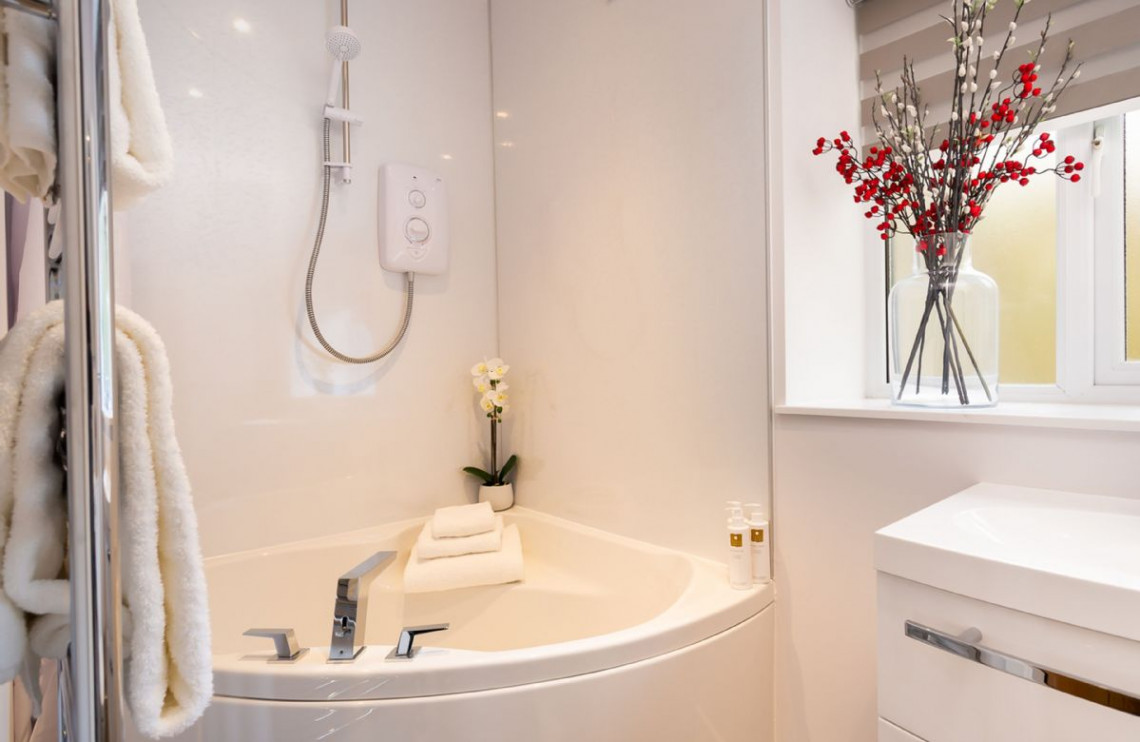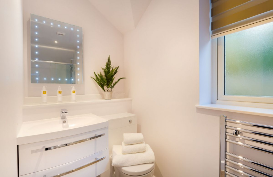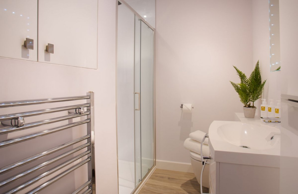 There’s impressive attention to detail throughout, with a parquet floor in the living room, Egyptian cotton linen in the bedrooms and en-suites for every bedroom. The zip and link bed in the super king size bedroom can be converted to twin beds, just ask before your stay.