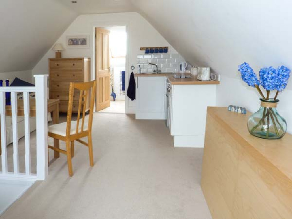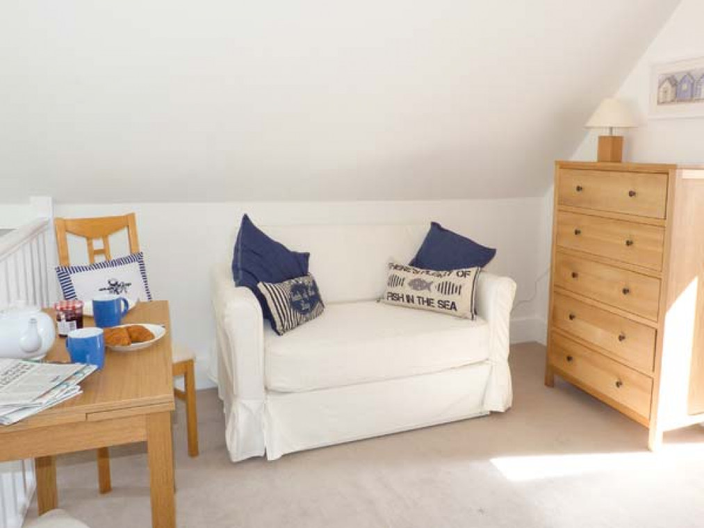 Sidlesham 1.5 miles. This light and bright contemporary first floor barn conversion is situated above a triple garage in the grounds of the owner's home on the outskirts of Sidlesham, between Chichester and Bracklesham Bay in West Sussex. The apartment is situated in beautiful countryside to offer guests the delights of both a rural and coastal holiday all in one. The huge window at one end of this stylish apartment allows light to flood in as well as allowing for stunning views over the fields with Chichester Cathedral, Goodwood Racecourse and the South Downs in the distance. As the apartment is located on the first floor, guests can have the beauty of watching the sunrise and sunset over the cottage grounds. All the furnishings have been carefully chosen to allow guests a holiday with comfort and relaxation in mind. From the king-size double bed to the large walk-in shower, guests can unwind before planning their days out relaxing on the beach, sailing or swimming in the sea, or just cycling and walking on the numerous footpaths that criss-cross this part of West Sussex. Why not take advantage of the owner’s large garden and breakfast on coffee and croissants to the sound of birdsong. Nature lovers will delight in discovering the Medmerry and RSPB Reserve which is less than five minutes’ walk away, whilst watersports enthusiasts have the choice of a variety of activities that pepper this part of the South Coast. Bracklesham beach is a mere fifteen minutes’ walk, where you can relax to the sound of waves, beachcomb for local fossils or watch the windsurfers battling the elements across the bay. Chichester is only six miles away with its many restaurants, shops, museums, Cathedral and theatres, whilst the world-famous Goodwood is just nine miles away with its motor racing circuit as well as the horse racing festival which takes place every July. From a romantic break to an adventure packed holiday, this apartment is the perfect choice. All first floor. Open plan studio accommodation with king-size double bed, kitchen, dining area and sitting area with sofa bed. Shower room with shower, basin and WC. Amenities for Rental Electric radiators Electric oven and 2-ring hob, microwave, fridge, TV with Freeview, DVD, WiFi, selection of books, games and DVDs Fuel and power inc. in rent Bed linen, towels, beach towels and bath robes inc. in rent Travel cot on request Off road parking for 1 car Secure bike storage in owner's garage Shared use of owner's garden with furniture Two well-behaved pets welcome Sorry, no smoking Shop 2 miles, pub 1.5 miles Note: Restricted head height due to sloping ceilings Note: There is a child's tree house/activity area in the owner’s garden Use at guest's own risk and children to be supervised Note: Due to rural location, the WiFi signal can occasionally be intermittent Note: Max. 2 adults and 2 children Note: Check-in 2pm.