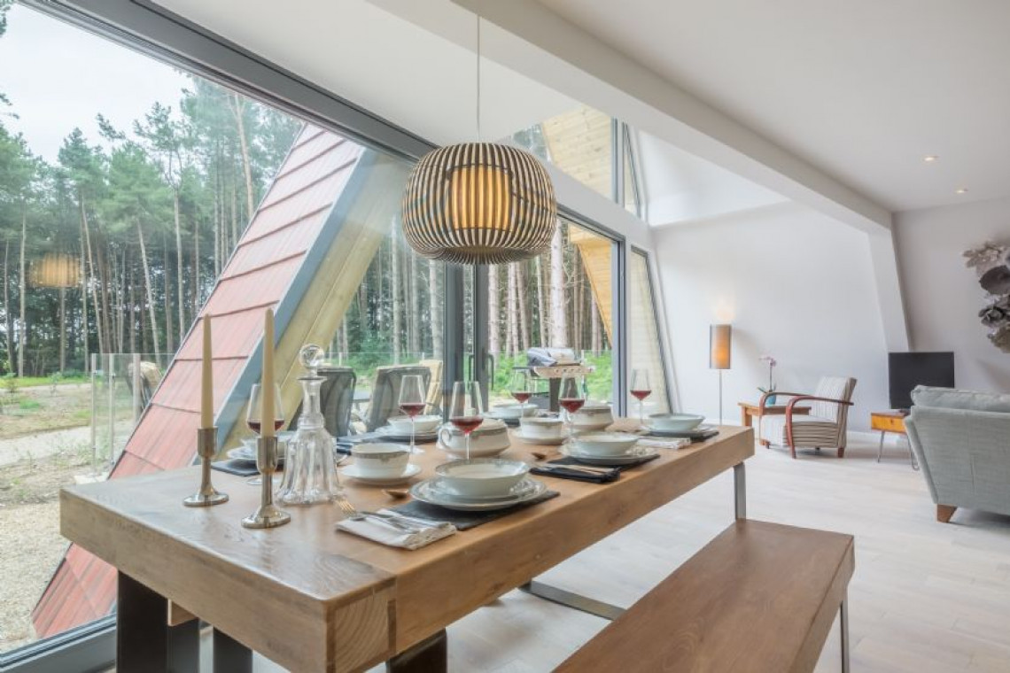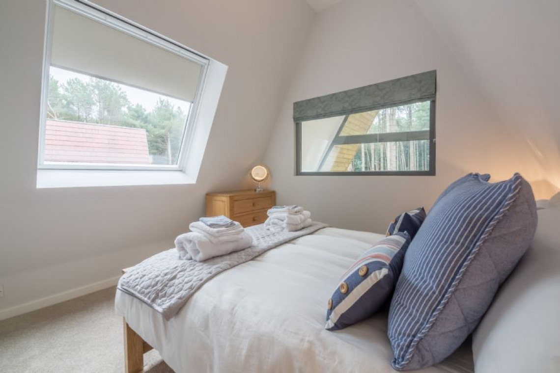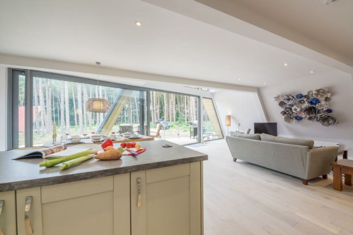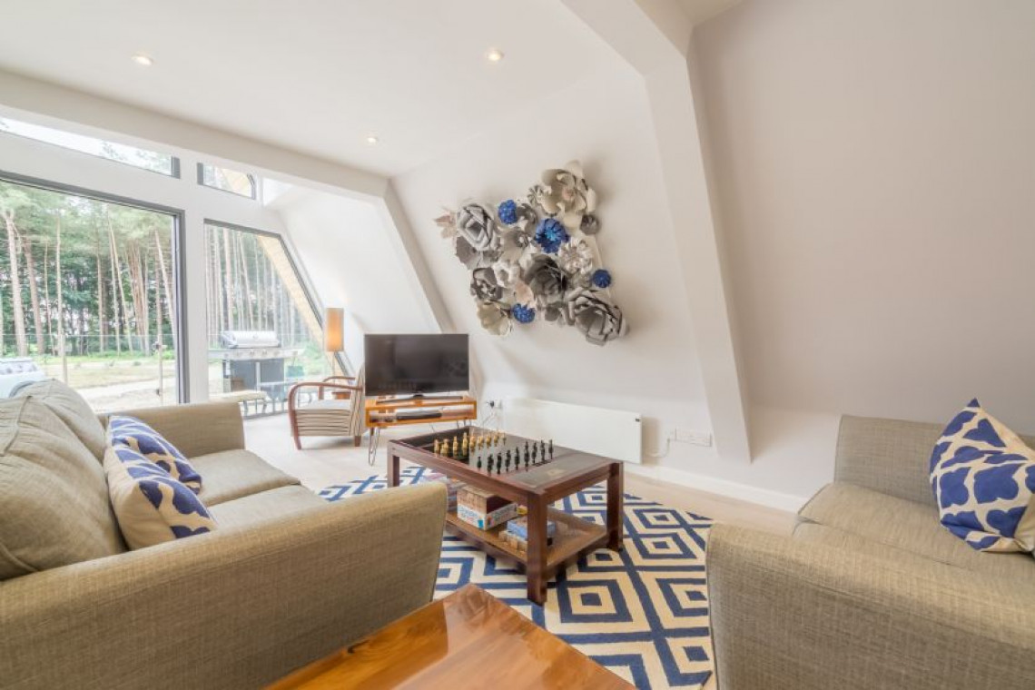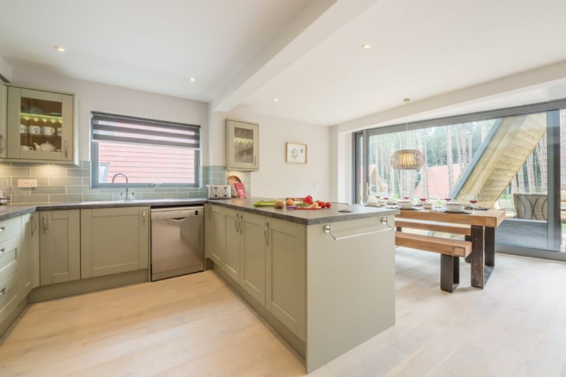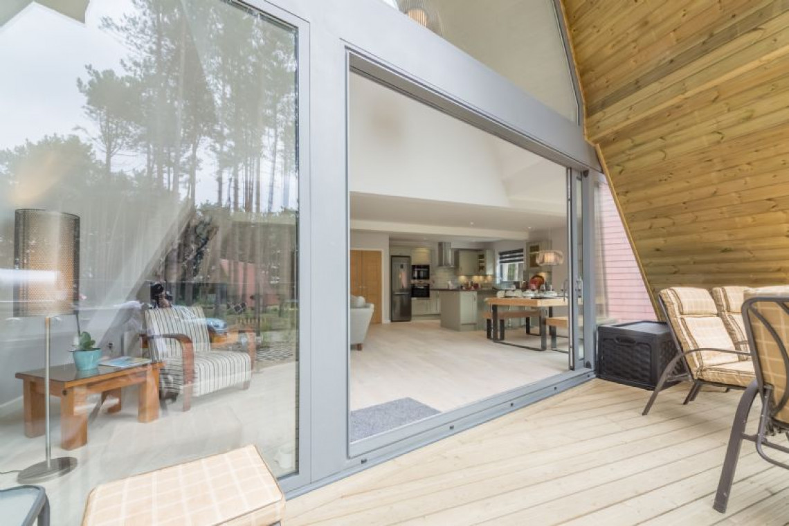 The lodge has three bedrooms, one of which is downstairs, and two bathrooms.The stunning open-plan and light-filled living space has one totally glazed wall to take full advantage of the woodland scene outside. This is a superb place to socialise, as well as relax and take in the view - slide open the door and you can bring the outside in. On warm days you have a choice of two decked, glazed balconies, where you can enjoy some alfresco dining or just lie back, look at that great big Norfolk sky and listen to the birds!