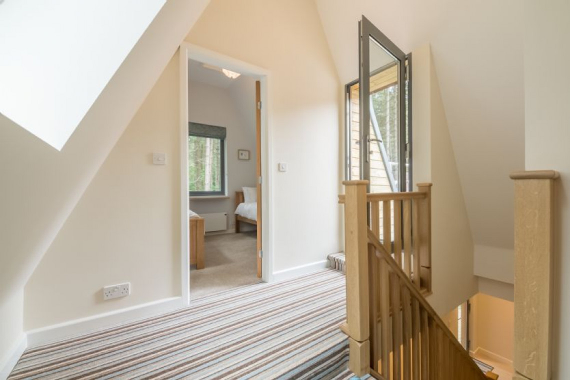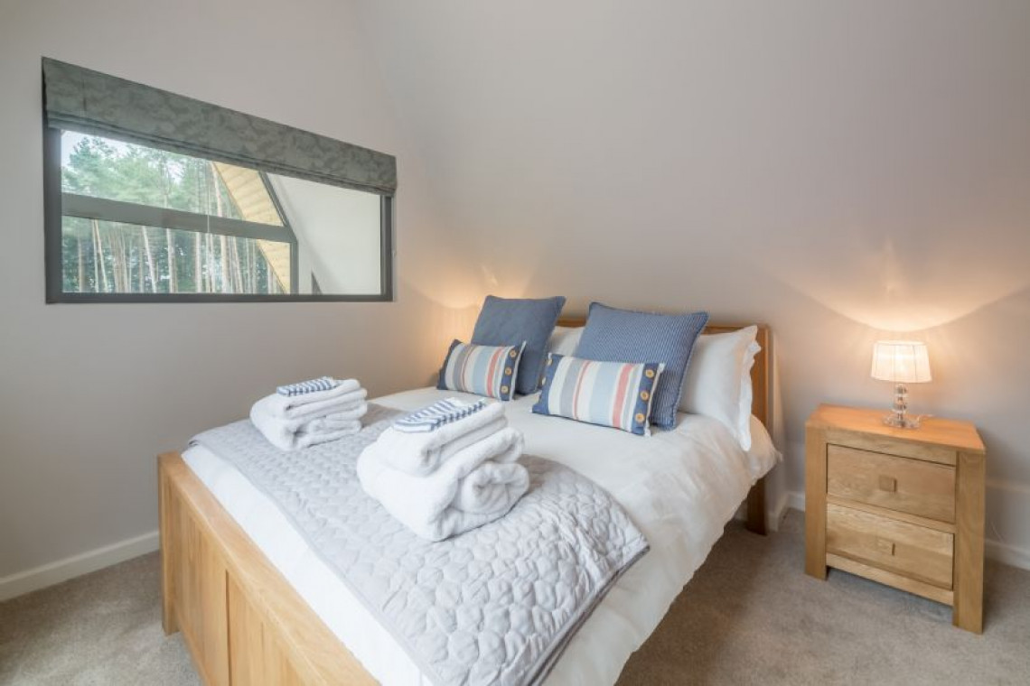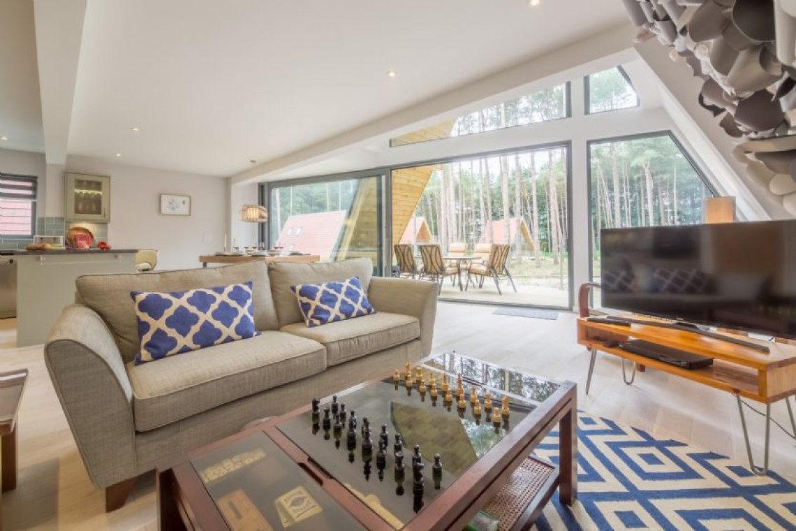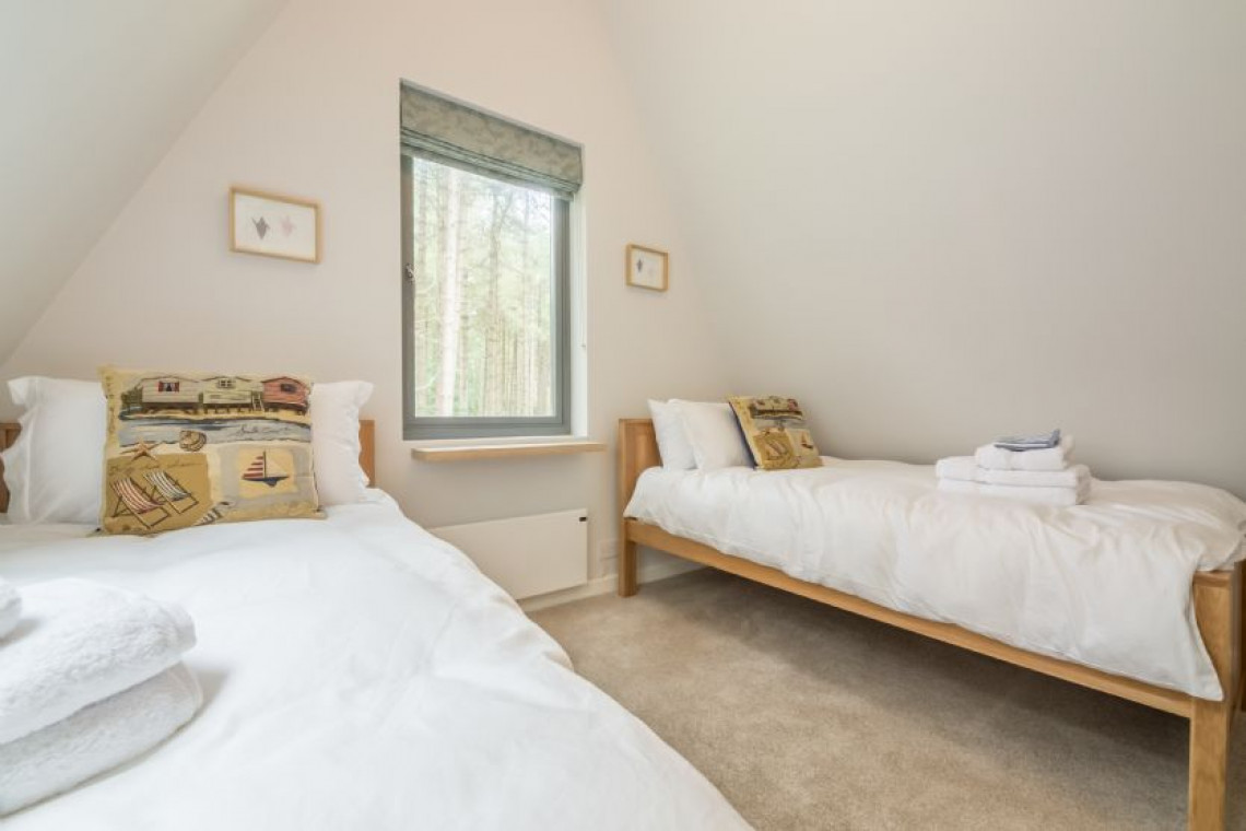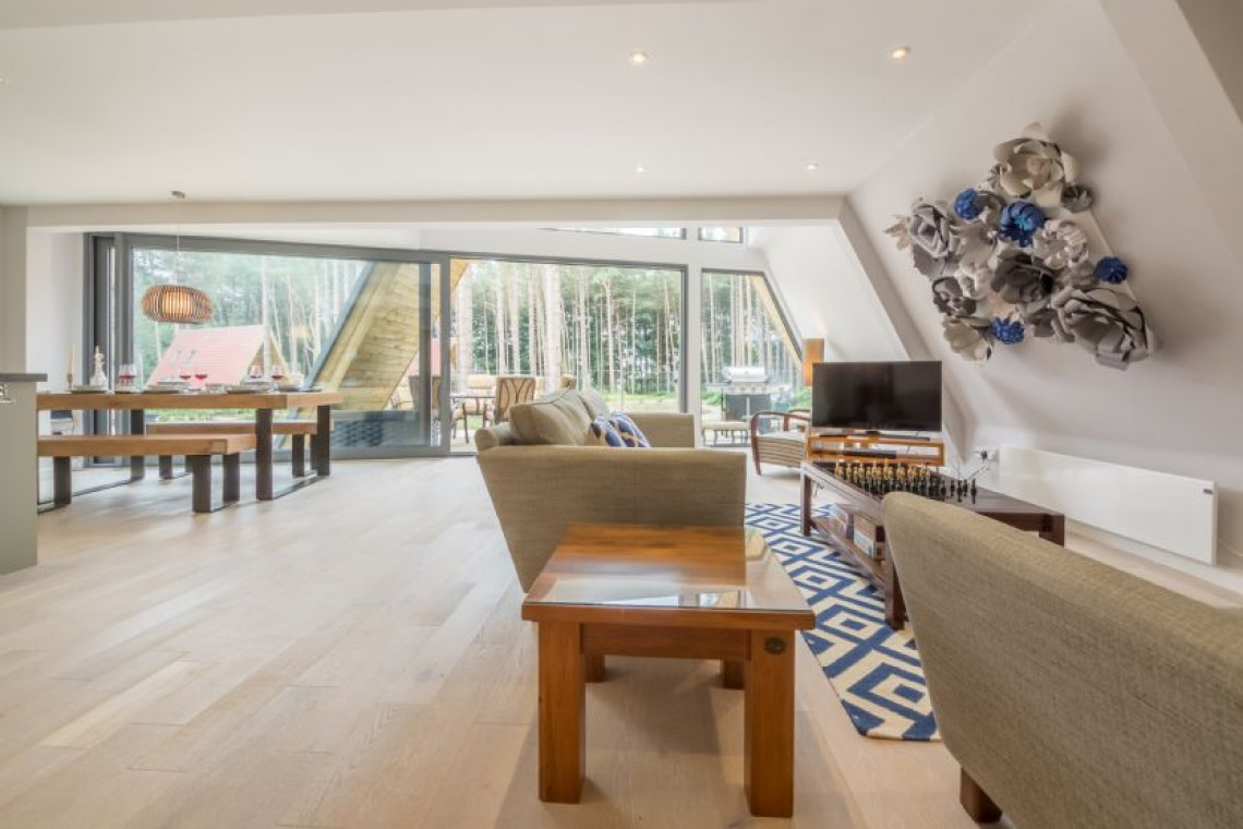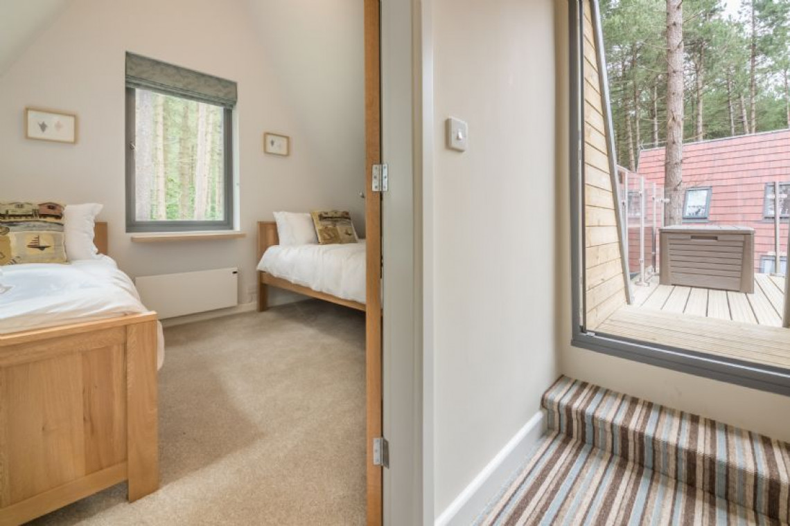 The lodge has three bedrooms, one of which is downstairs, and two bathrooms.The stunning open-plan and light-filled living space has one totally glazed wall to take full advantage of the woodland scene outside. This is a superb place to socialise, as well as relax and take in the view - slide open the door and you can bring the outside in. On warm days you have a choice of two decked, glazed balconies, where you can enjoy some alfresco dining or just lie back, look at that great big Norfolk sky and listen to the birds!
