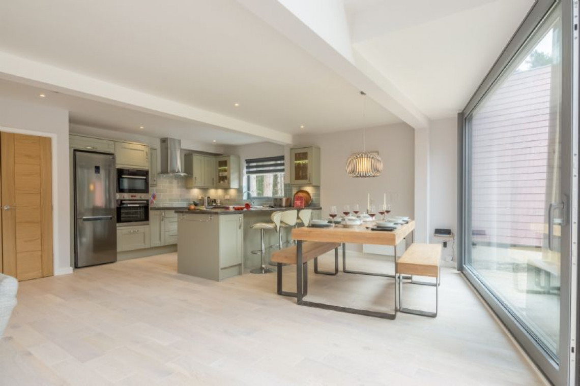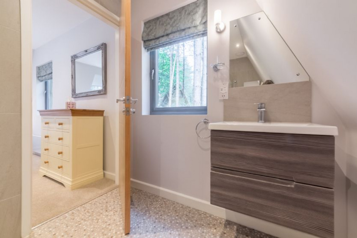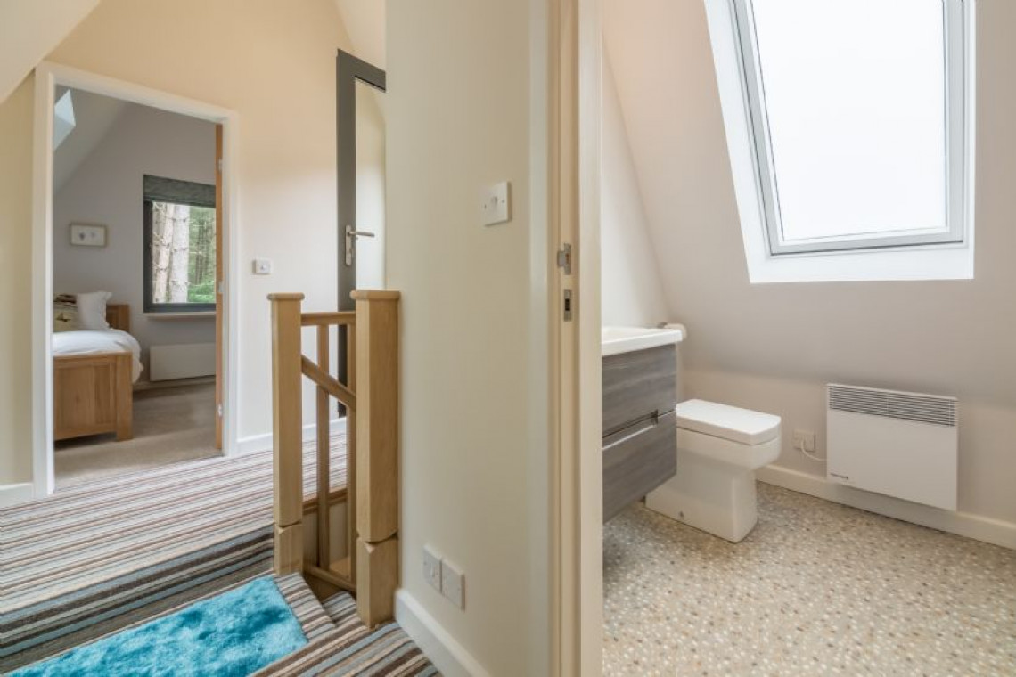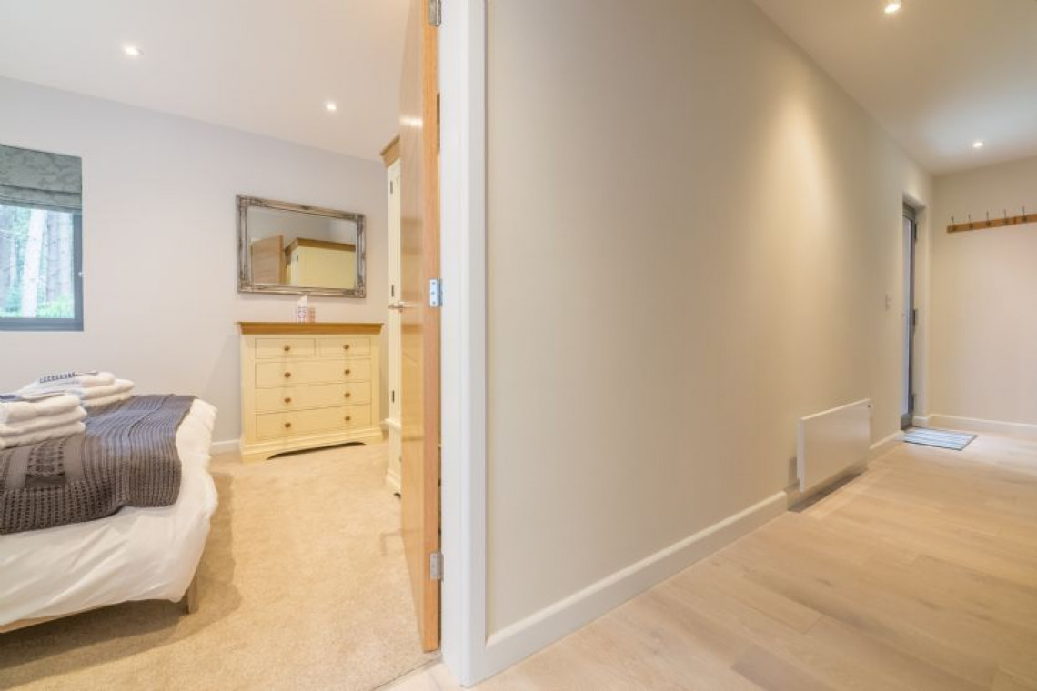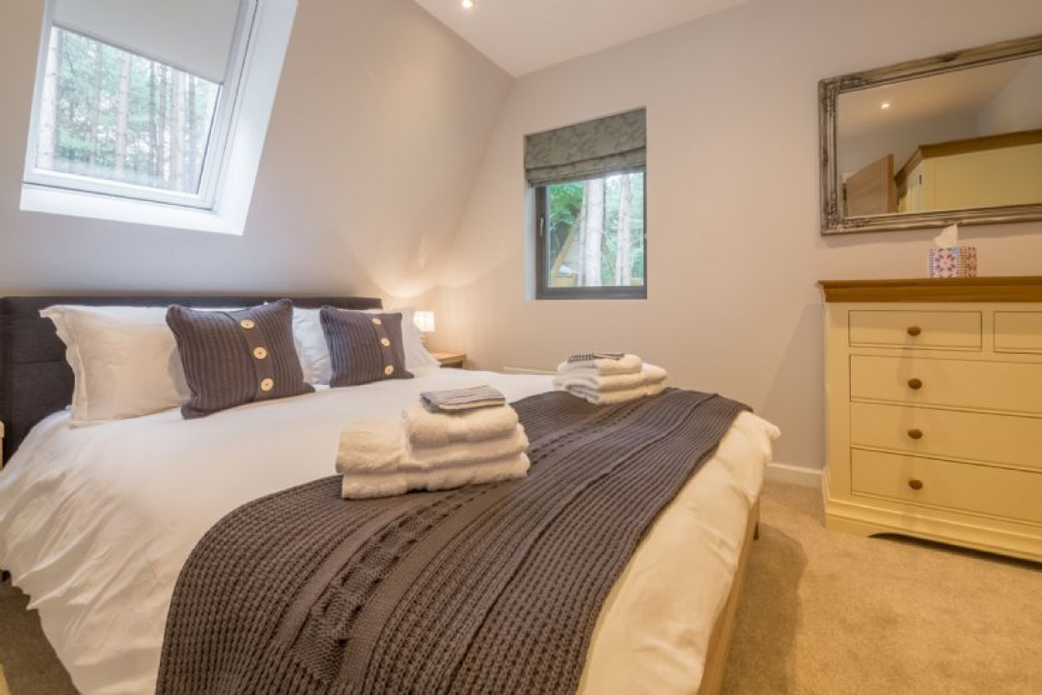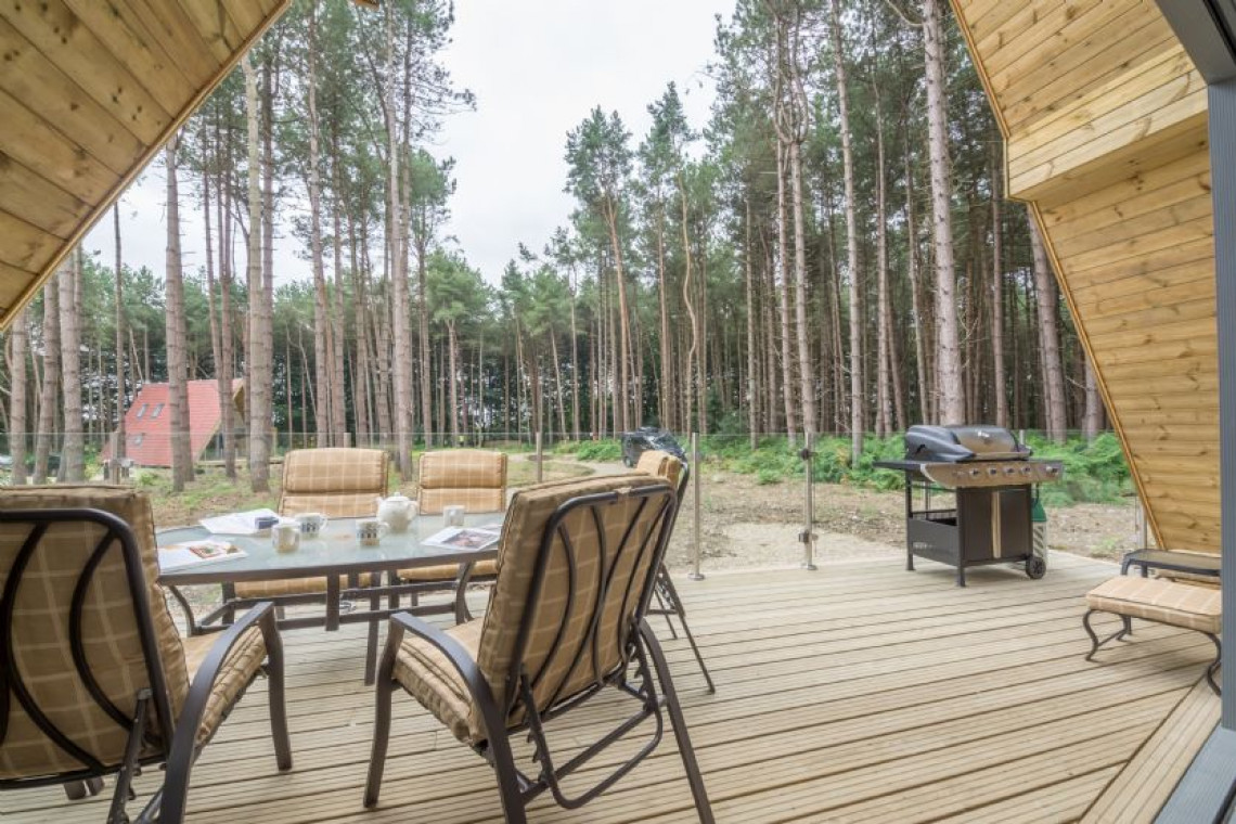 The lodge has three bedrooms, one of which is downstairs, and two bathrooms.The stunning open-plan and light-filled living space has one totally glazed wall to take full advantage of the woodland scene outside. This is a superb place to socialise, as well as relax and take in the view - slide open the door and you can bring the outside in. On warm days you have a choice of two decked, glazed balconies, where you can enjoy some alfresco dining or just lie back, look at that great big Norfolk sky and listen to the birds!