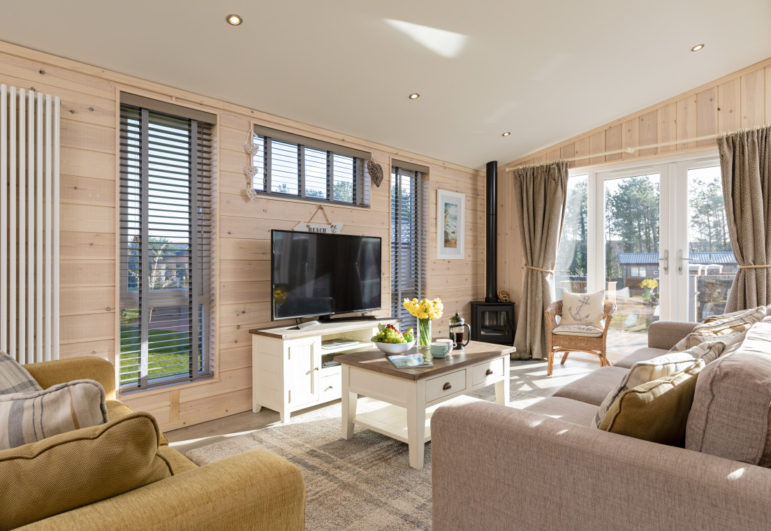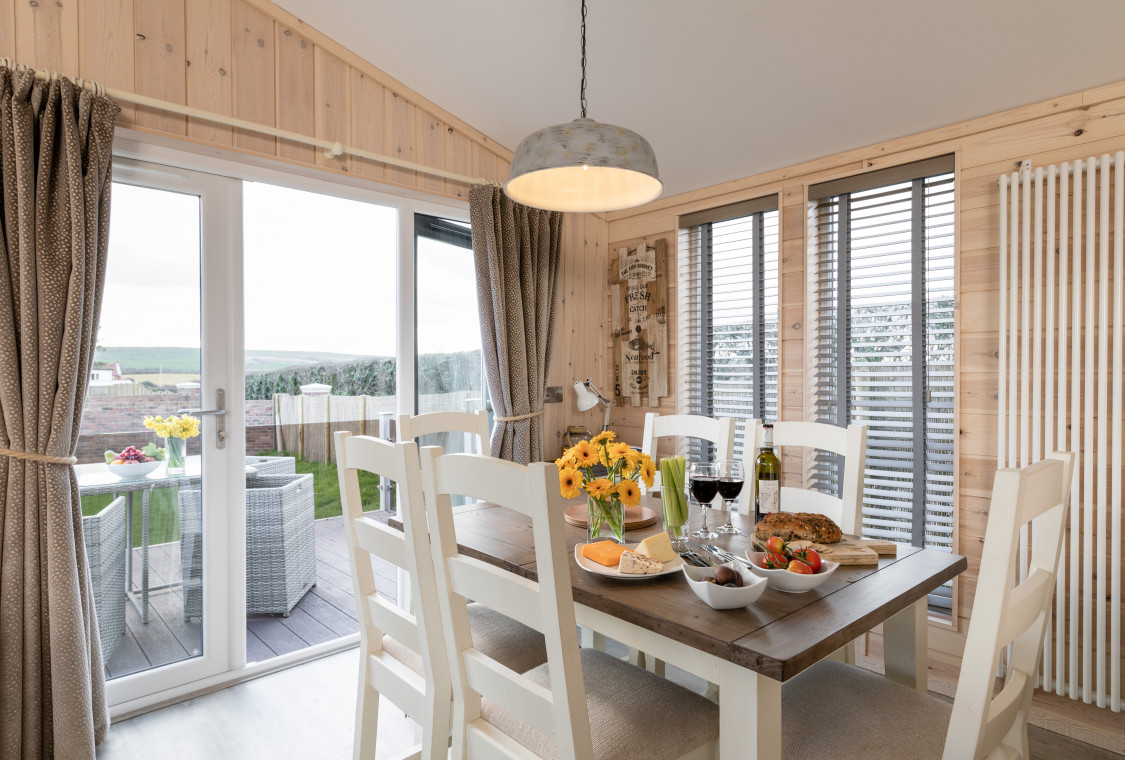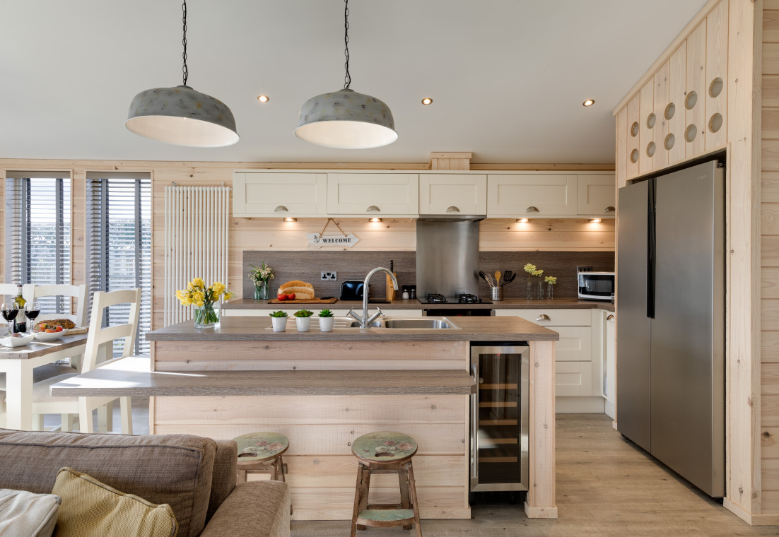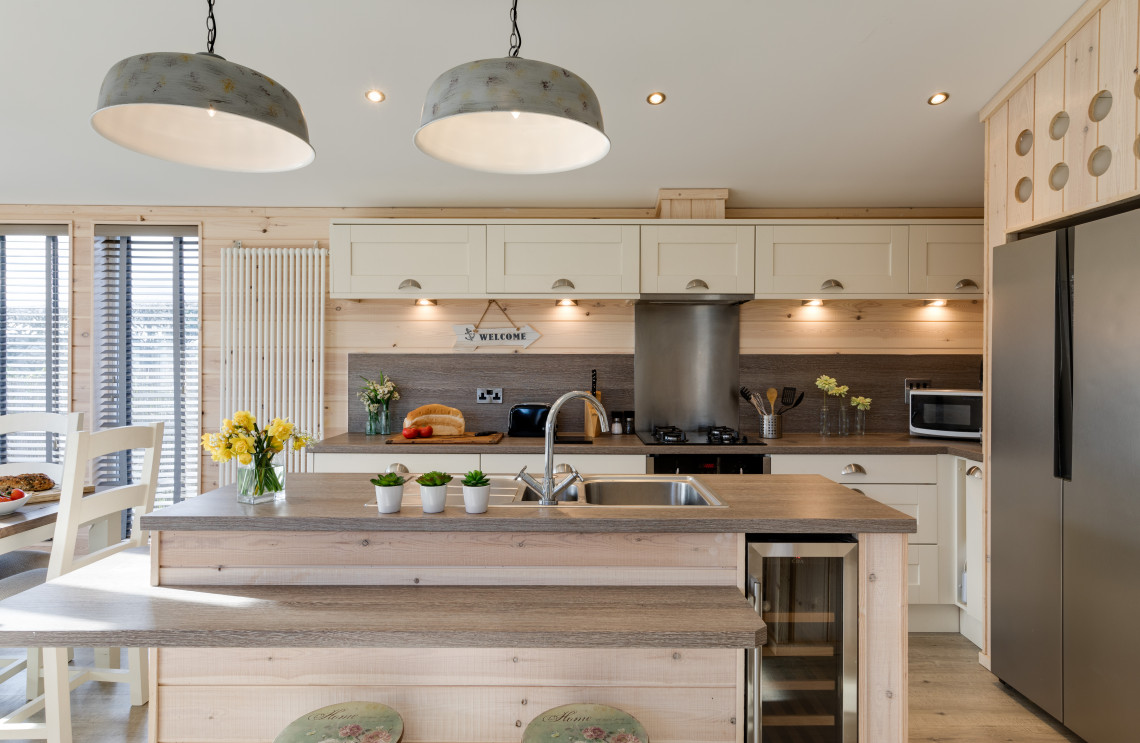 Stunning, luxury three bedroom lodge with outside space and beautiful decor beautiful Runswick Bay, a stroll from the picturesque beach. This luxury lodge has a large, open plan living space comprising sitting room, kitchen and dining area. The sitting room has comfortable sofas, flat screen Smart TV/DVD and a wood burning stove-style electric fire. The dining area comfortably seats seven people with French doors leading to the veranda where there is a table and seating. The kitchen is stylish with gas oven and hob, a large, American-style fridge, freezer, dishwasher, microwave, wine fridge, plus plenty of equipment if you like to cook. Off the sitting area is a small utility room with a washing machine/dryer. There are three beautiful bedrooms; a master bedroom suite which has a double bed and a lovely en-suite shower room with a shower, WC and hand wash basin. A twin bedroom has two, full size 3′ beds plus there’s a charming family bedroom with a full size 3′ single bed plus adorable cabin-inspired bunk beds! The house bathroom has a large bath, WC and hand wash basin. To the outside is a driveway with open plan gardens comprising lawns with young trees; the veranda is large and ideal for sunbathing or enjoying eating outside and has seating including a table and chairs. Amenities for Rental
