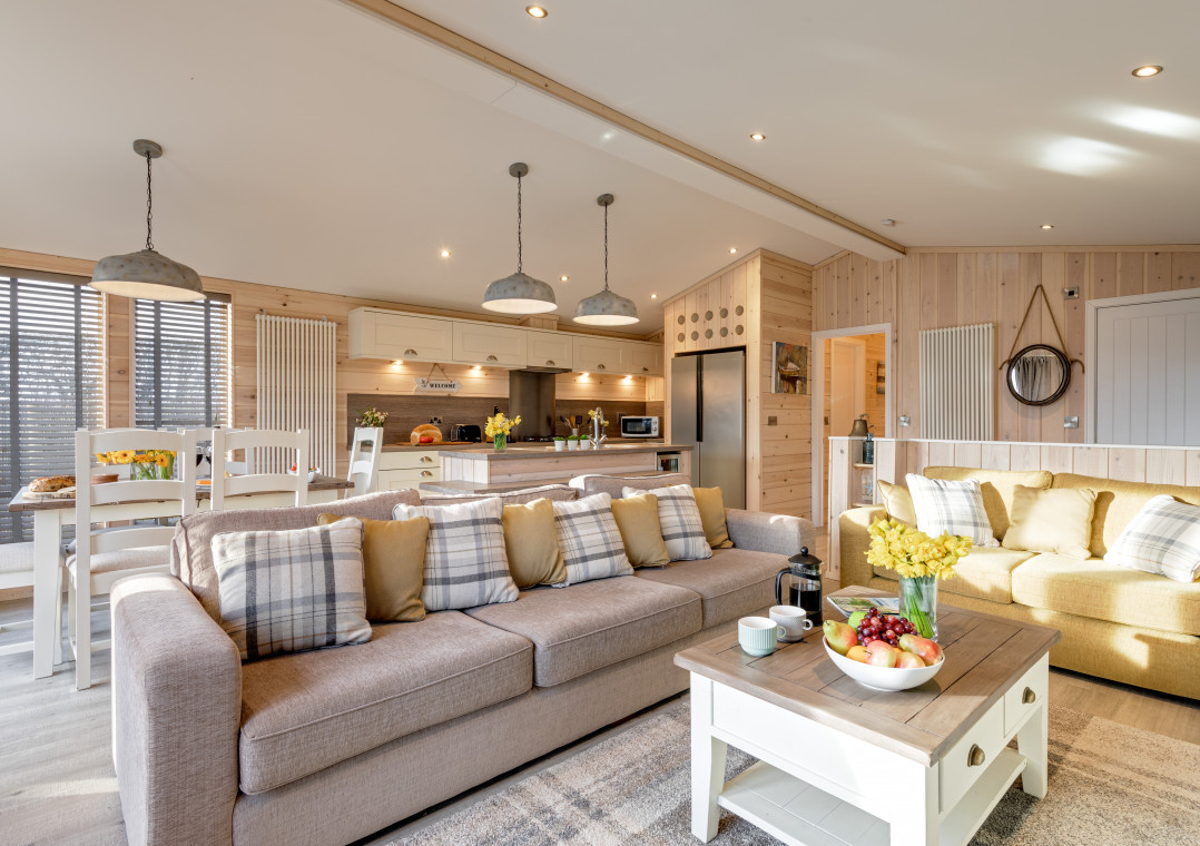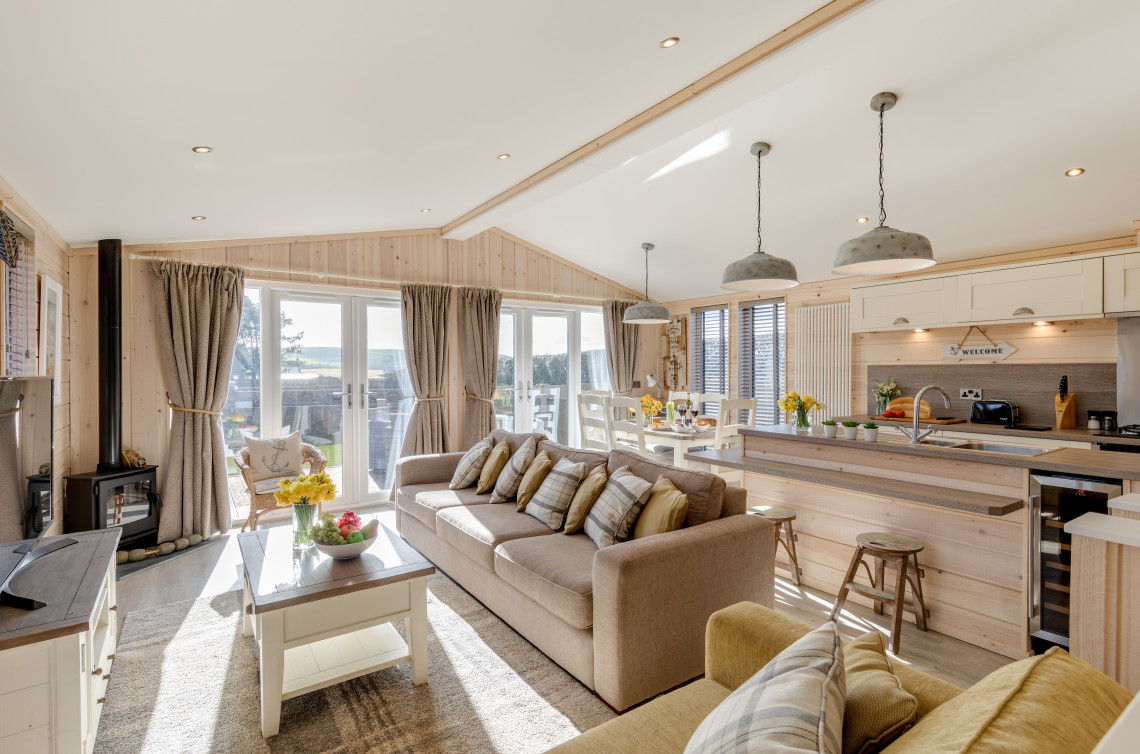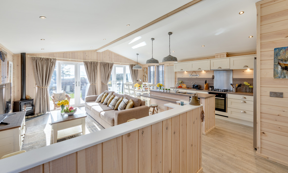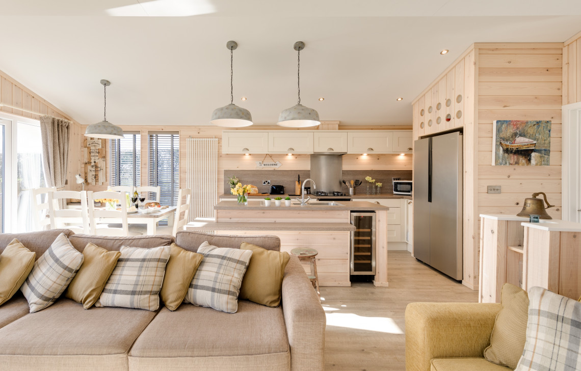 Stunning, luxury three bedroom lodge with outside space and beautiful decor beautiful Runswick Bay, a stroll from the picturesque beach. This luxury lodge has a large, open plan living space comprising sitting room, kitchen and dining area. The sitting room has comfortable sofas, flat screen Smart TV/DVD and a wood burning stove-style electric fire. The dining area comfortably seats seven people with French doors leading to the veranda where there is a table and seating. The kitchen is stylish with gas oven and hob, a large, American-style fridge, freezer, dishwasher, microwave, wine fridge, plus plenty of equipment if you like to cook. Off the sitting area is a small utility room with a washing machine/dryer. There are three beautiful bedrooms; a master bedroom suite which has a double bed and a lovely en-suite shower room with a shower, WC and hand wash basin. A twin bedroom has two, full size 3′ beds plus there’s a charming family bedroom with a full size 3′ single bed plus adorable cabin-inspired bunk beds! The house bathroom has a large bath, WC and hand wash basin. To the outside is a driveway with open plan gardens comprising lawns with young trees; the veranda is large and ideal for sunbathing or enjoying eating outside and has seating including a table and chairs. Amenities for Rental