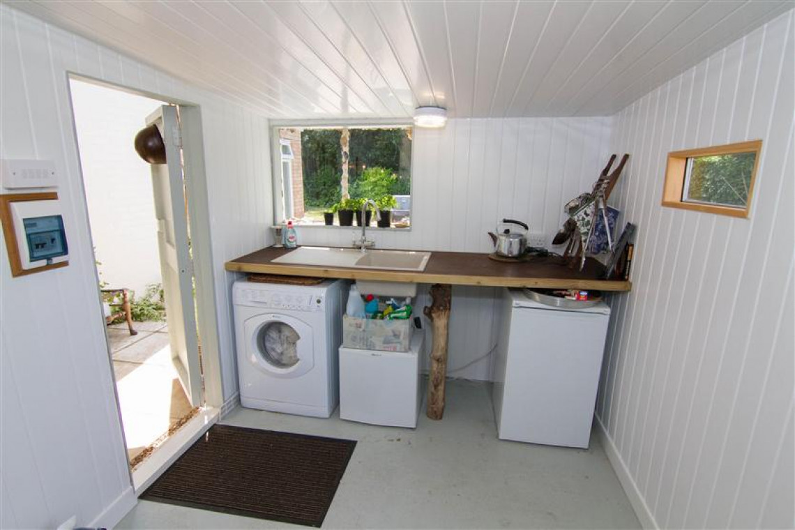 The bungalow is both cheerful and quirky with a bright sitting room with french doors leading to the charming garden which is fully enclosed and is the ideal place for al fresco dining on warmer summer evenings. There are two comfortable bedrooms and a family bathroom along with a useful utility/garden room with an extra fridge, washing machine, plus a shower room.