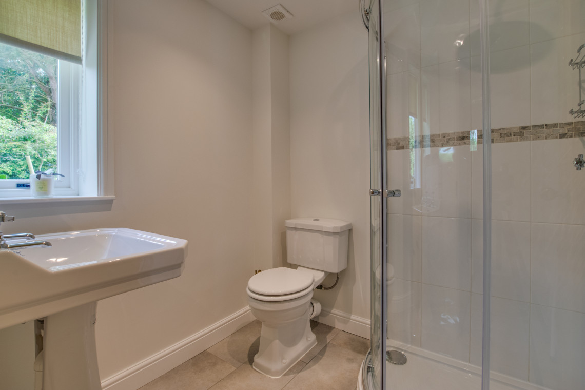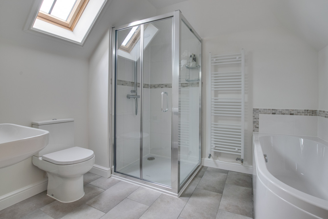 Family Bathroom: Shower cubicle, bath, w.c. and basin.