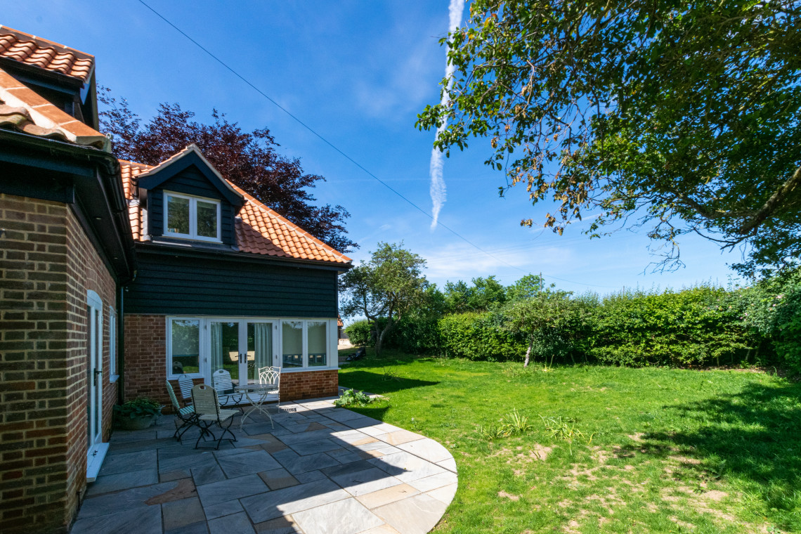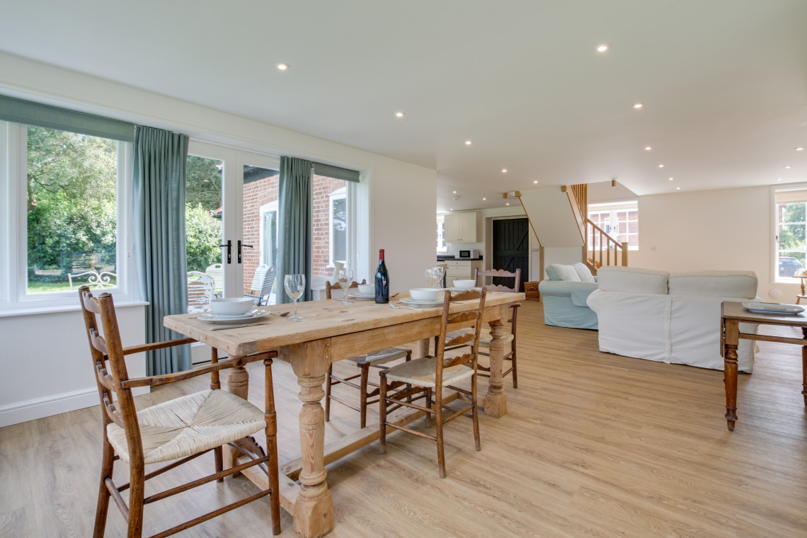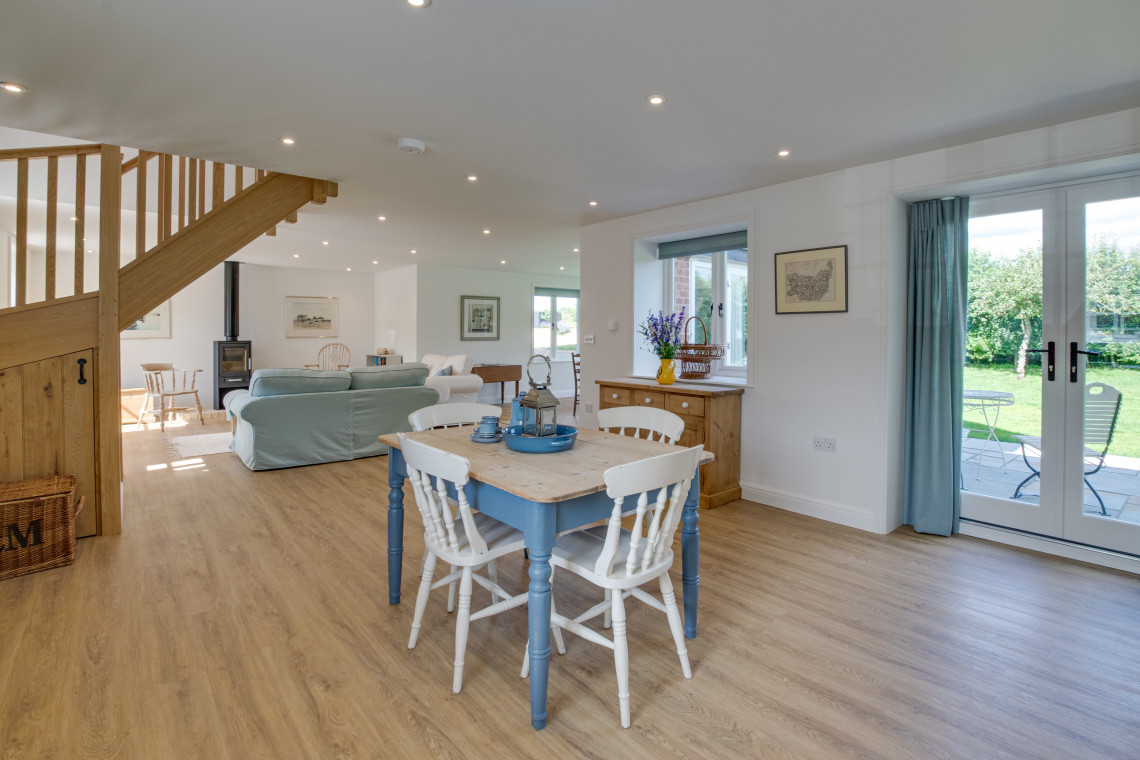 Space, comfort and a sprinkling of modernity... you'll find it all here at Lodge Farm Barn. Newly converted in 2018/19, this former farm barn has been completely redesigned and re-imagined to provide plentiful holiday accommodation for up to four people. With a generous open plan living area on the ground floor, you really won't feel on top of each other. The sitting area centres around the wood burner and is an ideal place to rest and relax with a glass of red, or a good novel. The shaker kitchen, complete with butler sink, has ample space for food storage and cooking and has the benefit of a fridge/freezer and dishwasher. A small breakfast table here is a good spot for catching up on the morning news, or you could of course dine at the dining table in the fully glazed garden room extension, where you can enjoy views of the garden. On this floor, you'll also find a convenient utility area, with space for muddy boots and dog leads, as well as a shower room; ideal after days spent on the beach or in the water.