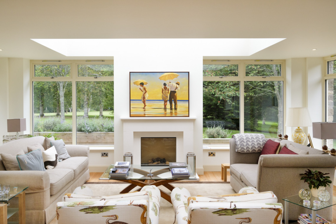 - Living space in sun room with dining facilities for 10, large windows and skylight with garden views