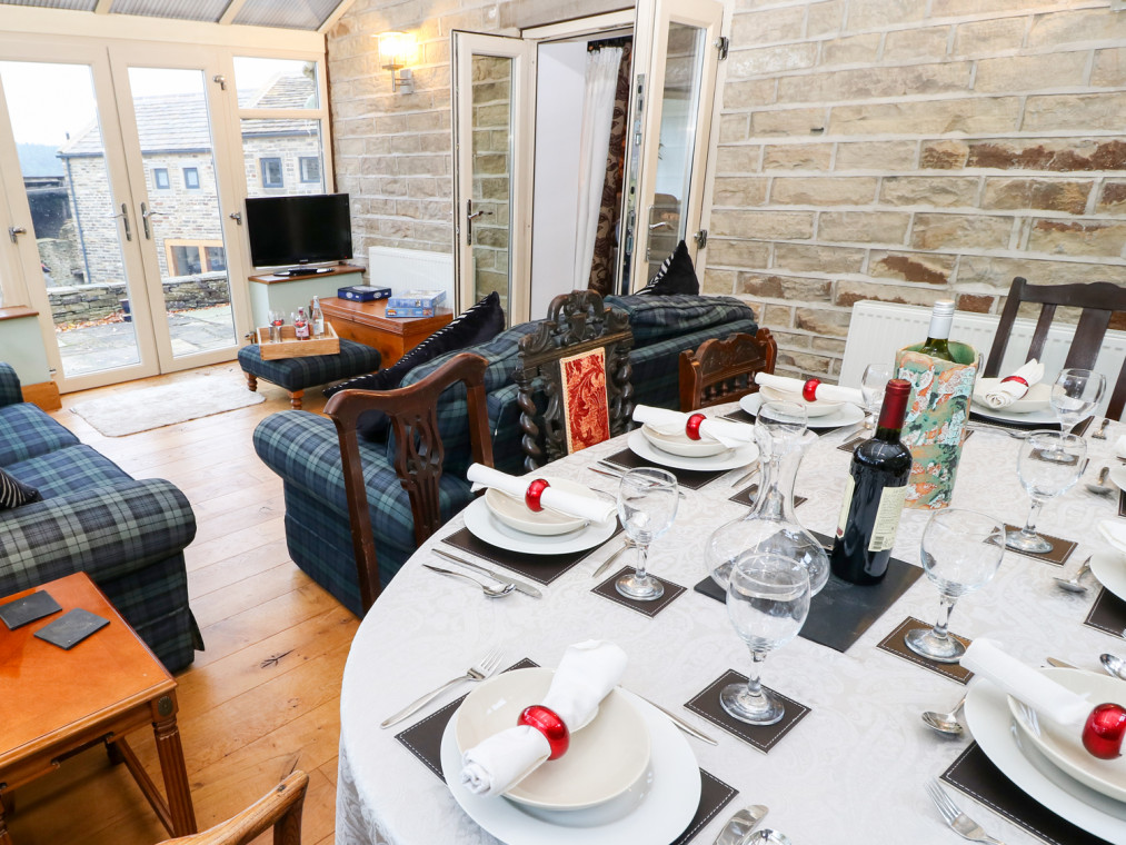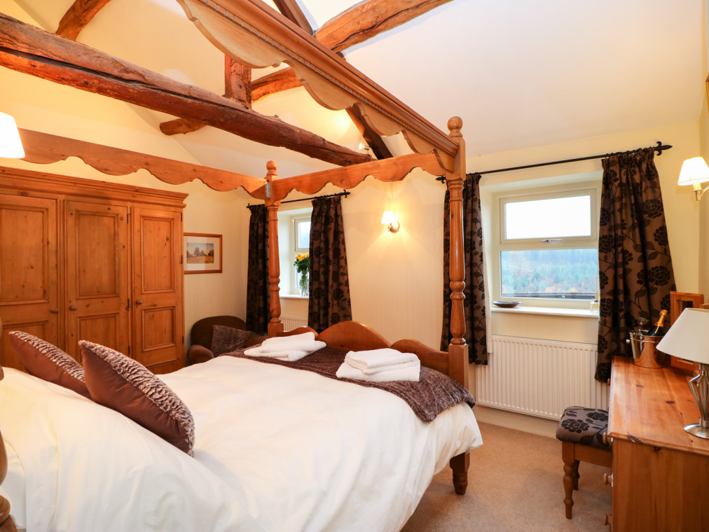 Nestled on the owner's working farm, on the fringes of the Peak District National Park, and with easy access to Holmfirth, is Long Ing Farm. This stone-built detached cottage is bursting with character from head to toe, with exposed beams, open eaves and traditional furnishings. The farmhouse kitchen boasts a lovely dining area and a fabulous AGA range cooker integrated with high spec units and sleek granite worktops. A woodburner sits in the lounge next door, adding warmth to those cool winter nights, as the family gets together in front of the TV. Large plush sofas are perfect for relaxing after the many walks you can venture on within the National Park. Just off from here is the conservatory, creating harmony between the interior and outdoor spaces. Take yourself off for a quiet read, or simply enjoy the countryside scenery. There is also a large dining table in this room. Upstairs are three double bedrooms, one with a four poster bed and en-suite shower room, a super king-size double with zip and link beds, followed by another double and an adult bunk room. The family bathroom enjoys a bath tub with a hand-held shower attachment. Outside is a sunny patio, a sweeping lawned garden and views across green trees and farmland. This quiet location is convenient for accessing the small town of Holmfirth, which was made famous by the TV series The Last of The Summer Wine. It has lots to offer its visitors, including a wide range of places to eat and drink, walking in abundance and awe inspiring scenery across the Holme Valley. The Peak District offers some fantastic outdoor activities and many pretty towns and villages to visit along the way. Choose this as your next holiday base in West Yorkshire. Four bedrooms: 1 x king size four poster bed with en-suite shower room with shower, basin and WC, 1 x super king-size double (zip/link can be twins on request) with en-suite shower room with shower, basin and WC, 1 x double, 1 x adult bunks. Bathroom with bath, hand-held shower, basin and WC. Kitchen/diner. Porch for hanging coats and shoe storage. Large utility with washing machine, tumble dryer and extra fridge freezer and a Nespresso machine. Sitting room with woodburning stove. Bathroom with shower, basin and WC. Large conservatory with additional seating, dining table, TV and games. Hot tub Amenities for Rental Central heating with woodburning stove Electric oven, halogen hob, AGA range cooker, microwave, American fridge/freezer with filtered ice/water dispenser, dishwasher, washing machine, tumble dryer, WiFi, Smart TV with blue ray DVD player Selection of films, books and games available Fuel, power and starter pack for fire/stove inc. in rent Bed linen and towels inc. in rent Cot and highchair available Ample off-road parking Garden with patio and lawned area One well behaved dog welcome Sorry, no smoking Shop, pub, butchers and deli less than a mile Note: A meet and greet service with the owners farm owners is available on request Note: The property is accessed via a private farm track, and it is a little uneven and bumpy in places.