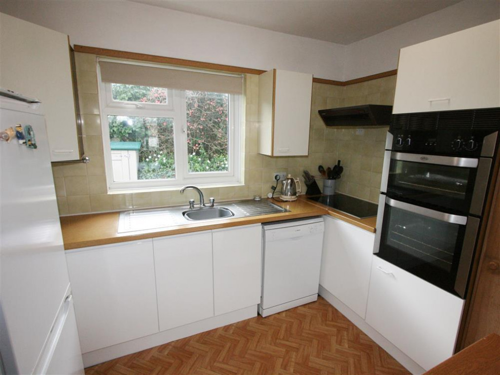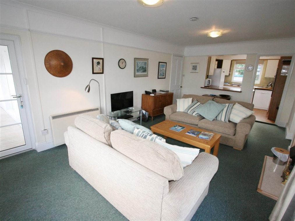 Tucked below a lane that leads to Chapel Point cove (with a detached garage and space for an additional car at lane level), a gate and path with three steps down leads to a fence and second gate into the garden immediately adjoining the bungalow. The front door leads through a sun room into a pleasant sitting / dining room with superb sea views from the window. The adjacent fitted kitchen "borrows" the views through a wide hatchway.