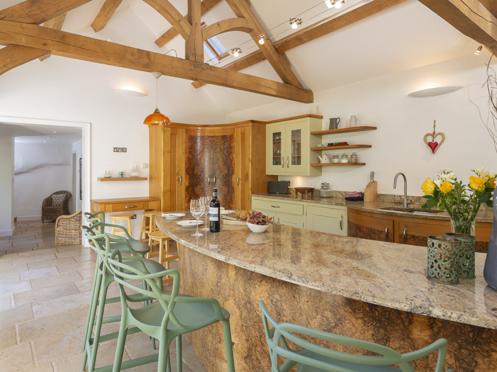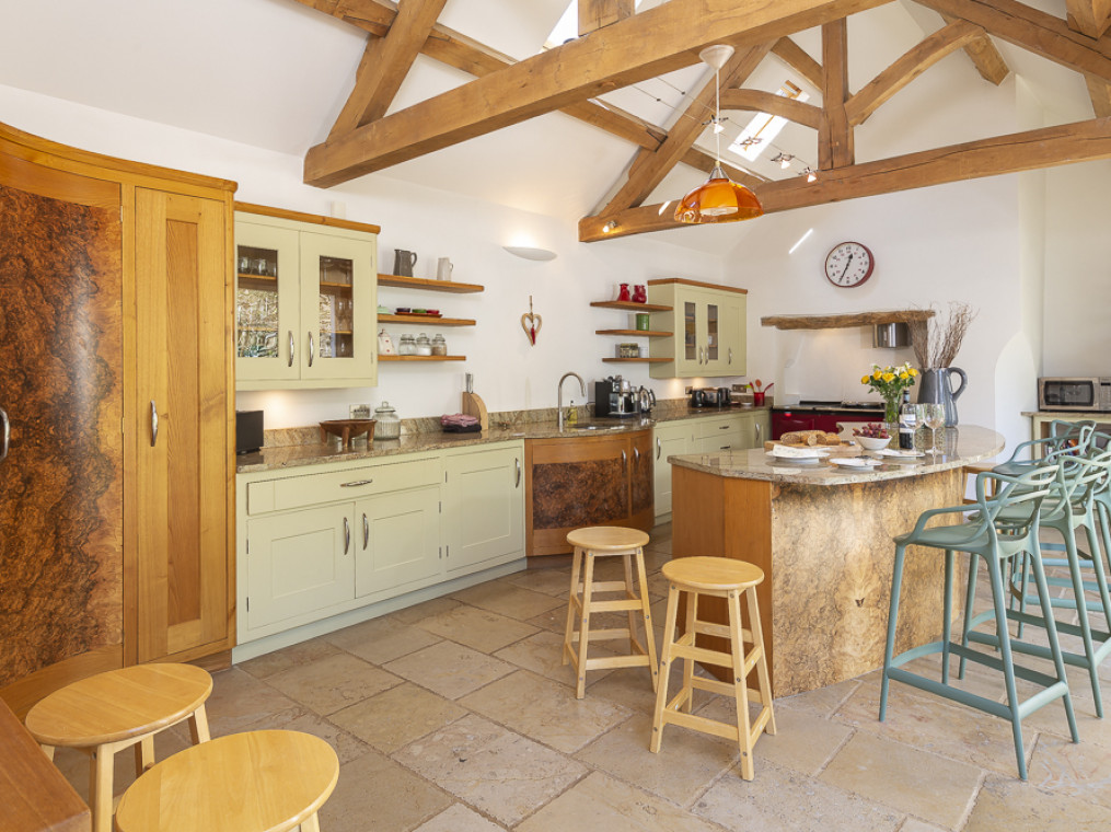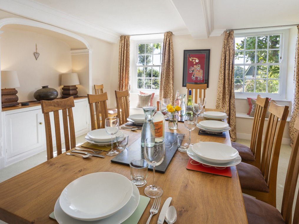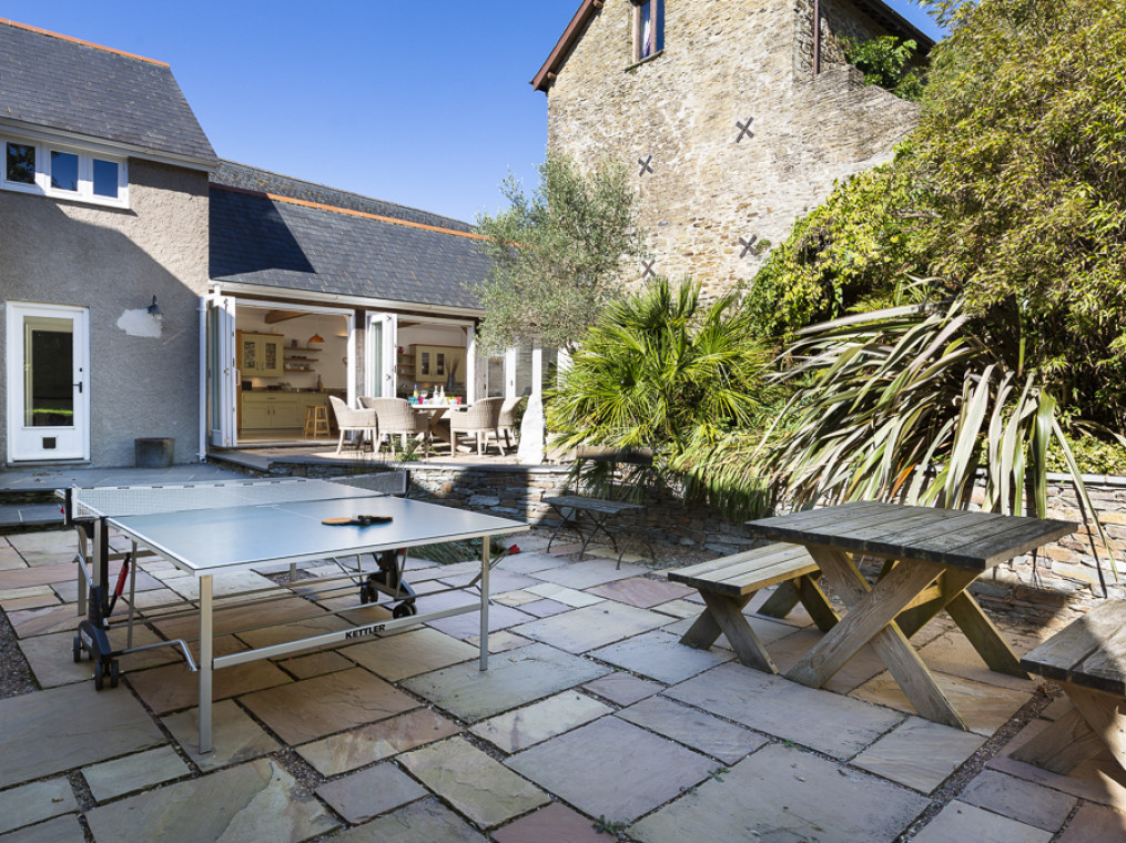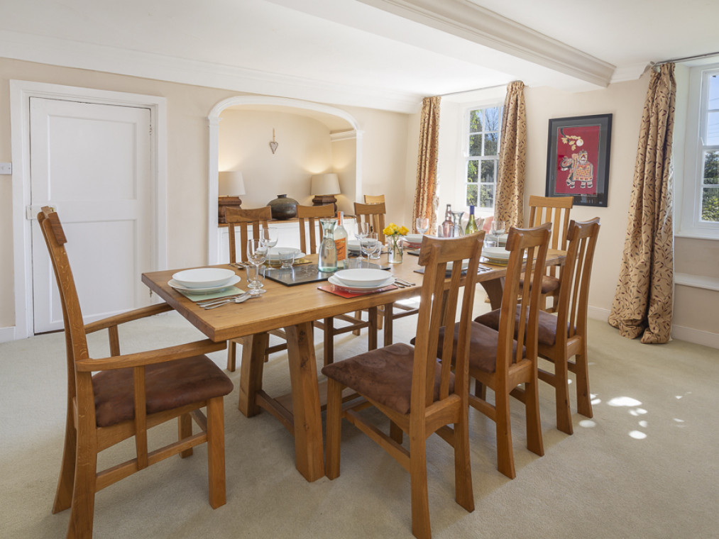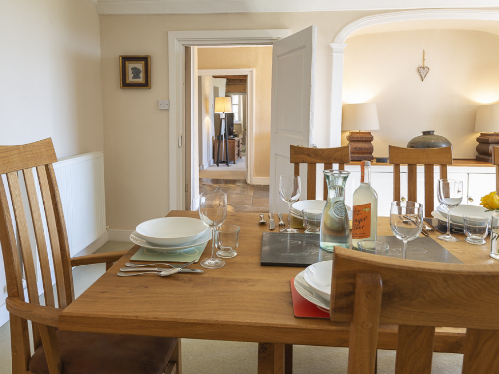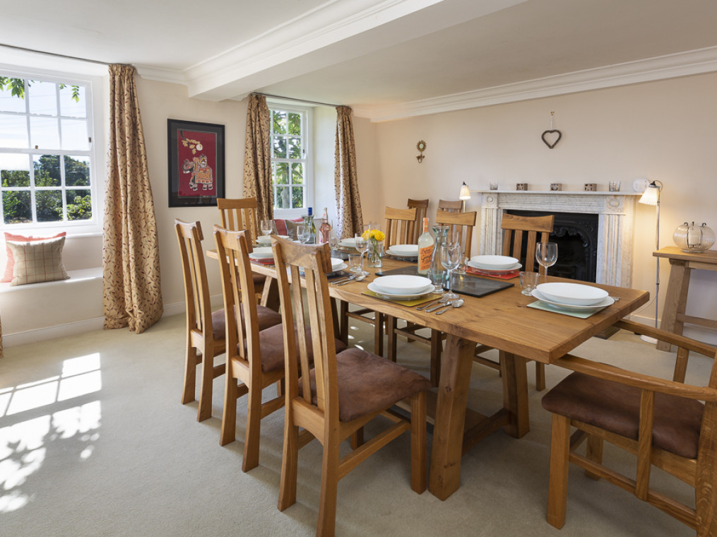 Lower Easter Farmhouse is fabulous renovated rural property with character and charm. Located in the pretty green hamlet of Easton, just a short drive from Salcombe and within an easy reach of Kingsbridge, this farmhouse is dog friendly and sleeps ten comfortably. Spread over three floors, this property is well equipped and has been furnished to a very high standard throughout. On the ground floor is a stunning hand-crafted modern kitchen with a range of appliances including a four-oven AGA and a Liebherr fridge, an adjacent utility room and cloakroom which offer laundry facilities and storage space. Seamless glass doors open out onto the spacious sun terrace and generous garden where guests can enjoy drinks and a game of table tennis in the summer months. The bright and spacious dining room is perfect for entertaining with a grand oak table which seats ten and an open fire place. The living space boasts original oak beams, an Inglenook fireplace and a Smart television with Sky+ HD package for cosy nights in. The room leads into a small snug which a sofa and television. The large en-suite master bedroom has a super-King size bed, plenty of storage and lovely country views over the surrounding green fields. The second bedroom has a super-King size bed and a feature fire place whilst the third and fourth bedrooms have King-size beds. The fifth bedroom has been built into the roof space and is a twin, ideally suited to children. In addition, there is a family bathroom on the first floor and a shower room on the second. The spacious three-storey dog-friendly accommodation is comfortably furnished and well equipped – perfect for a family holiday in beautiful, rural surroundings. Five bedrooms: 1 x super King-size with en suite, 1 x super king size, 2 x King-size, 1x Twin. Additional cloakroom and utility room. Family bathroom. Shower room. Traditional country kitchen. Dining room. Living room with wood burning stove. Amenities for Rental Underfloor heating downstairs, and radiators upstairs The kitchen is equipped with Fridge/freezer (also full size freezer in utility room and small fridge) washing machine, tumble dryer, electric Aga, dishwasher, microwave, coffee machine, kettle, toaster TV, Sky + HD, wood burning stove in lounge Wifi available The front garden is bounded by an attractive stone wall with flagstone path - it features a small area of lawn, Small bistro table and chairs, to the side and rear of the house is a beautifully landscaped garden with a small shallow pond Wooden table with bench seating and gas barbecue Table-tennis table available (including bats and balls) Parking on drive for 2 cars, further parking for 2 cars on grass area at front of property Linen and towels provided Two well behaved pets welcome No smoking.