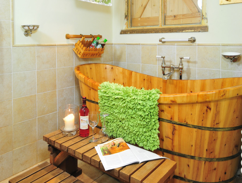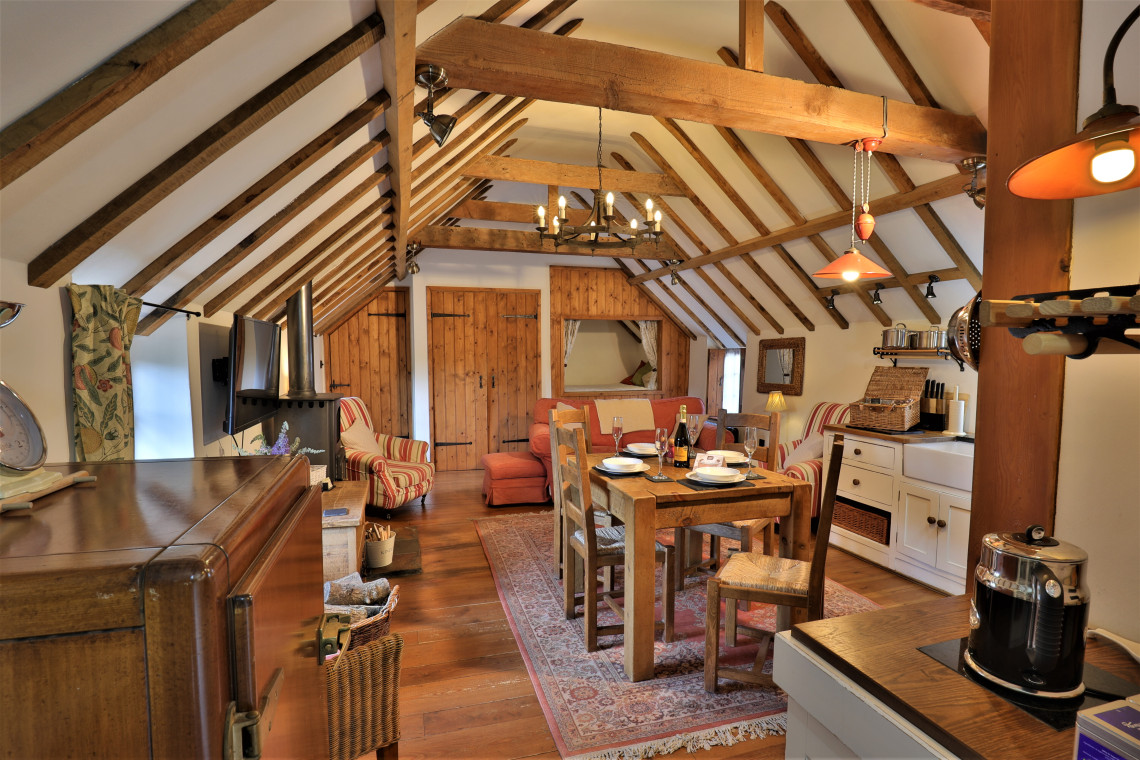 The Hayloft and Bothy area part of our converted stables next to the Manor House which we converted using historic methods and eco-friendly materials. The beautiful Hayloft is up a set of stone steps (with the garden at the bottom of the steps) and sleeps 2 in a main bedroom plus 2 children in an unusual box bed in the living area whilst the ground floor cosy Bothy is all at one level and sleeps 2 plus a child and has direct access to its little garden outside the back door. Both the Hayloft and the Bothy have lovely little kitchens, wood-burning stoves and beautiful bathrooms! We want to make sure you and your dog enjoy your stay – you are welcomed with a hamper of goodies and now we provide one for your dog too!