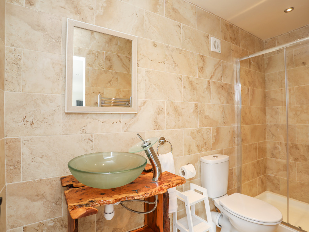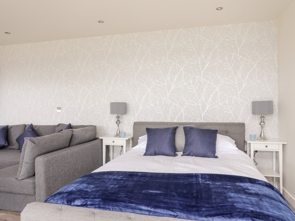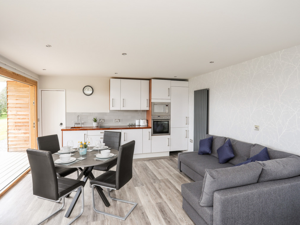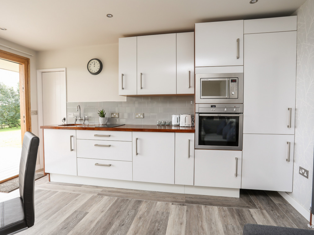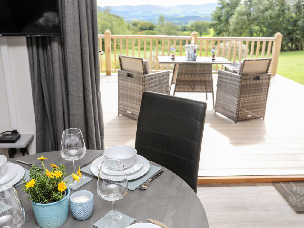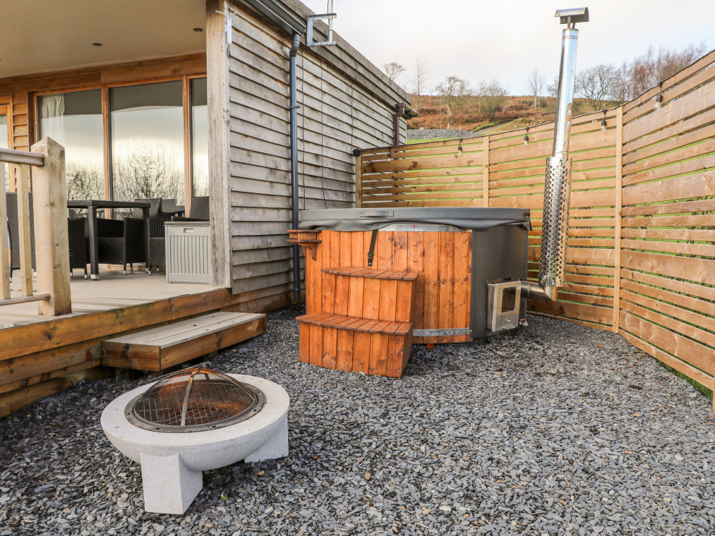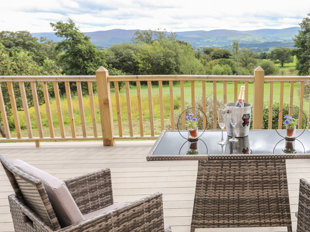 This enticing holiday lodge rests on The Hidden Meadow at Hafotty Gelynen, above the village of Maerdy near Corwen. Perfect for a romantic escape to Wales, this wooden lodge is a true idyll at any time of the year. Park up in the ample parking area and follow the path down to Meadow Lodge, soaking in your beautiful surroundings before entering into the open-plan studio layout. Take a seat on the convenient sofa bed, sleeping an additional two guests, and open up the bi-fold doors to let in the fresh countryside air. The well-equipped kitchen has all the essentials and equipment for a self-catered stay, the perfect option when you're not out sampling the local delicacies of North Wales, as well as, a dining table and chairs to seat the whole group if you're travelling as a four! After a busy day, choose between the plush sofa bed or the king-size bed, both offering a lovely sleeping spot to unwind and recharge. The lodge also benefits from having a shower room with WC and hand basin. The wonder of the property continues outside, with a decking area offering you the option of dining alfresco in the Summer months with the assistance of the fire pit/bbq. There is also your own private hot tub, where you can fully take in the scenery and indulge in a relaxing soak to end each day perfectly. The local area is extremely idyllic and makes the perfect spot for a walking holiday, with the local village of Maerdy offering a welcoming pub, The Goat Inn. Located near the River Ceirw, it makes a glorious stop off for a refreshing beverage, whilst the nearby market town of Corwen boasts a wider selection of amenities including a traditional butchers, greengrocers and bakery for a variety of fresh produce, as well as pubs, cafés, restaurants and a leisure centre, providing everything you could need and more for a stay in Wales. Enjoy exploring the luscious countryside in a different way on the Llangollen Heritage Steam Railway, leading you through Dee Valley's designated Area of Outstanding Natural Beauty. There's no better way to see the scenic sights of Wales. There are plenty of attractions within easy reach of the property too, with the National Trust wonders of Chirk Castle boasting over 700 years of history and award-winning gardens, as well as Erddig, resting above the winding Clywedog river, a lovely spot for a romantic picnic. The historic towns of Ruthin and Bala are also within close reach, with their own unique wonders and range of amenities. Chester, Llandudno and Snowdonia National Park are within driving distance too. Choose Meadow Lodge for an unforgettable stay in the countryside of Wales. Note: This property can be booked with property 1053186 and 1053193, together sleeping 10 guests. All-ground-floor studio layout. One king-size bed. Walk in wardrobe. Shower room with walk-in shower, basin, heated towel rail and WC. Open-plan living space with kitchen, dining area and sitting area with double sofa bed. Amenities for Rental Gas central heating Electric oven and hob, microwave, fridge, TV with FreeSat and WiFi Hair dryer High chair and travel cot available on request Fuel and power inc. in rent Bed linen and towels inc. in rent Ample off-road parking Private decking and lawn with furniture, fire pit/BBQ with utensils and woodburning hot tub (One bag of logs, kindling & firelighters provided) Extra logs available at £5 per bag Two well-behaved pets welcome (please keep off the furniture) Trolleys available for easy luggage transportation Sorry, no smoking Shop 6 miles, pub 2.5 miles. Note: Meadow Lodge is accessed up 3 decked steps