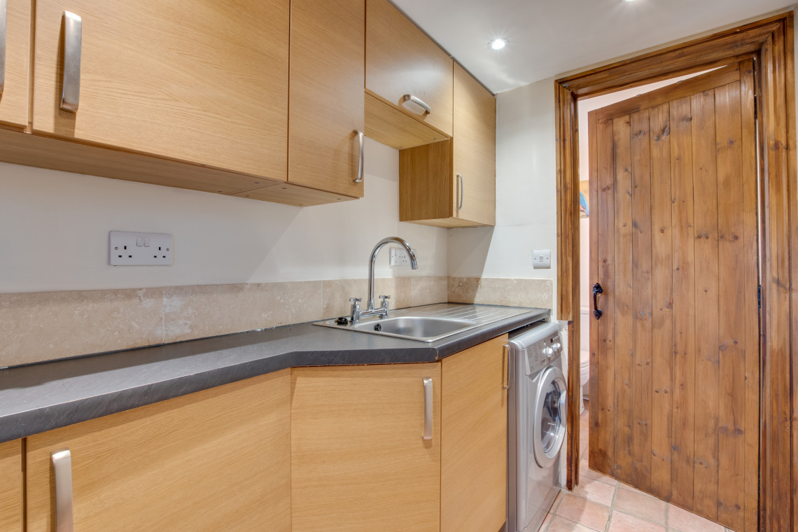 . Kitchen and Utilities: Electric oven and hob, extractor, microwave, fridge/freezer,