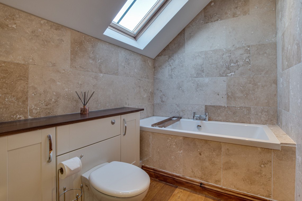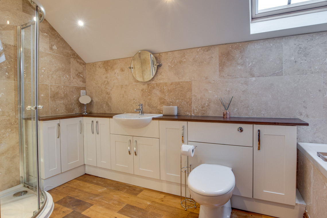 double ended bath, walk-in shower with separate hand-held attachment, WC and