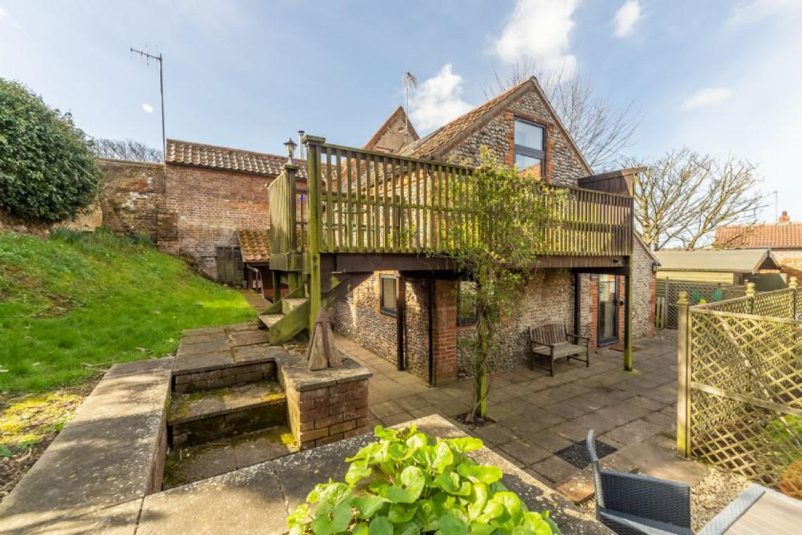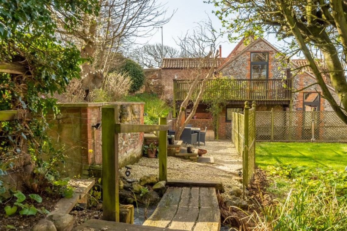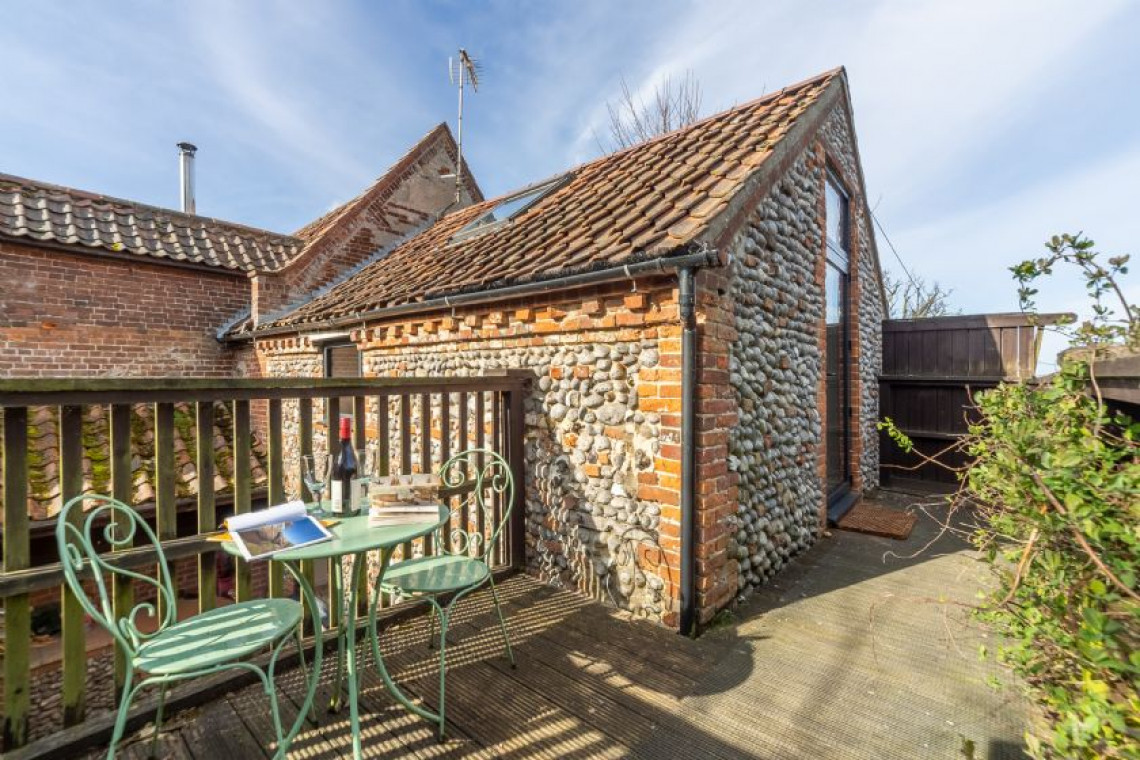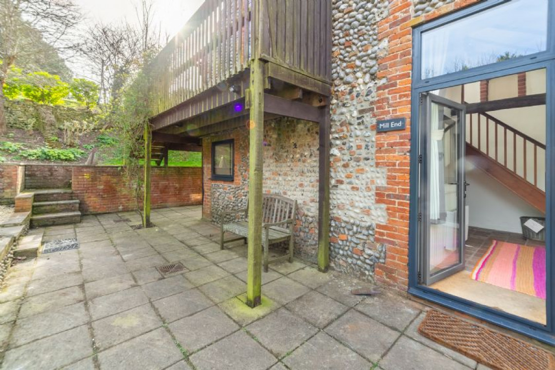 As the name implies, Mill End forms part of a converted water mill (and still has the mill stream running through the garden) and retains many character features, with beams, vaulted ceilings and traditional Norfolk pamment flooring. To take full advantage of the distant views and private nature reserve, the open-plan living area with balcony is on the first floor with the two bedrooms (double and twin) and bathroom on the ground floor. The cottage's interior has colourful furniture and furnishings creating a contemporary, bright and fresh Scandi-style, which complements the building's character and brings it to life. The garden is a lovely spot to enjoy a relaxing afternoon and the first floor balcony is just perfect for watching the sun go down with a glass of wine.