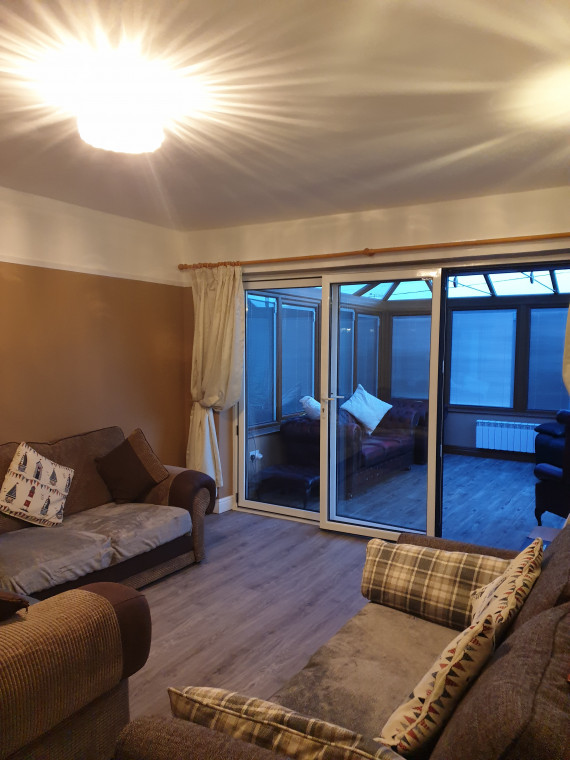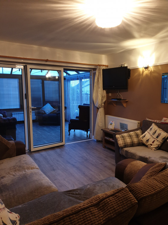 All ground floor. Three bedrooms: 1 Superking, 1 x double, 1 x twin. Bathroom with bath, shower over and basin. Separate WC. Kitchen. Utility. Dining room. Sitting room (seats 8). 2 Conservatories.