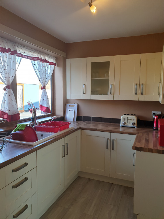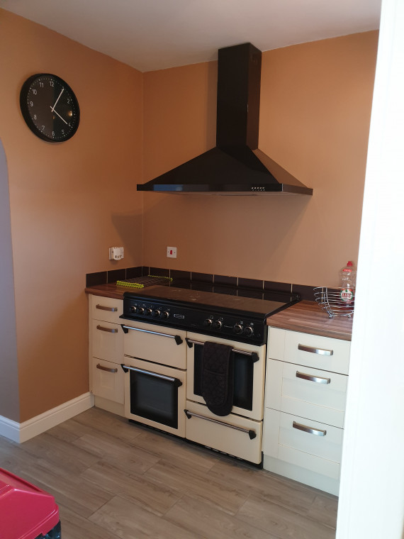 Electric range oven with gas hob, microwave, fridge/freezer, washing machine, tumble dryer, TV with Freeview, DVD, WiFi, Amazon Firestick, Alexa, selection of books, games and DVDs
