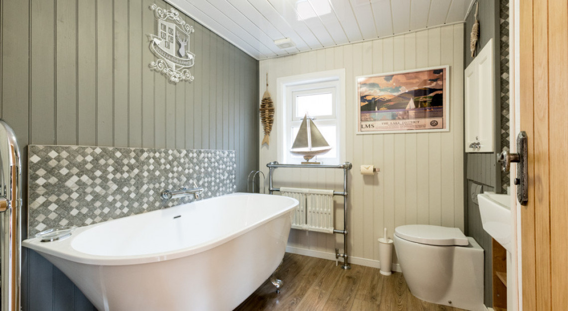 The impressive bathroom has a separate walk-in shower and standalone roll-top bath, again it's decorated to a high standard and truly feels impressive.