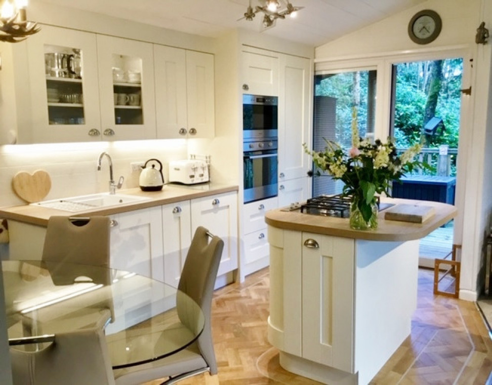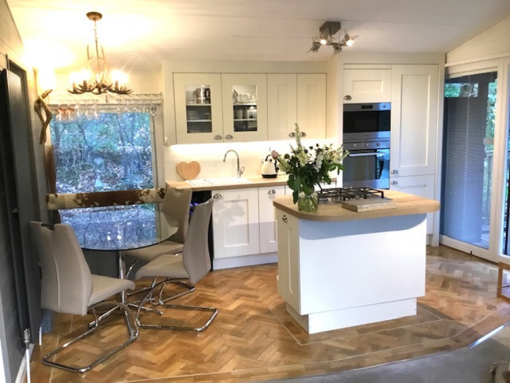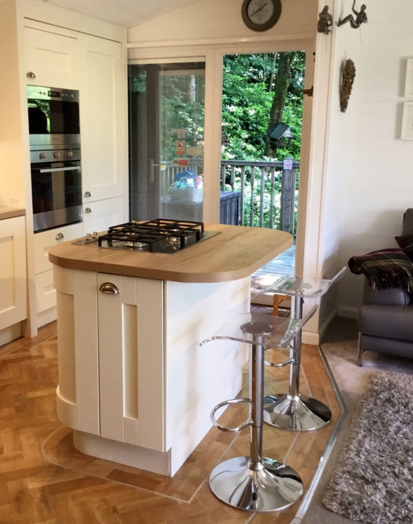 Immediately as you enter the lodge you are struck how the open plan living, dining and kitchen area is light and airy, with plenty of room for all your guests. The living area is based around a comfortable corner sofa and with bi-folding doors opposite you can really enjoy the sights and sounds of the outdoors whilst relaxing. The modern kitchen has everything you will need for your stay, including your very own wine fridge,..perfect for keeping your favourite tipple at its ideal temperature.