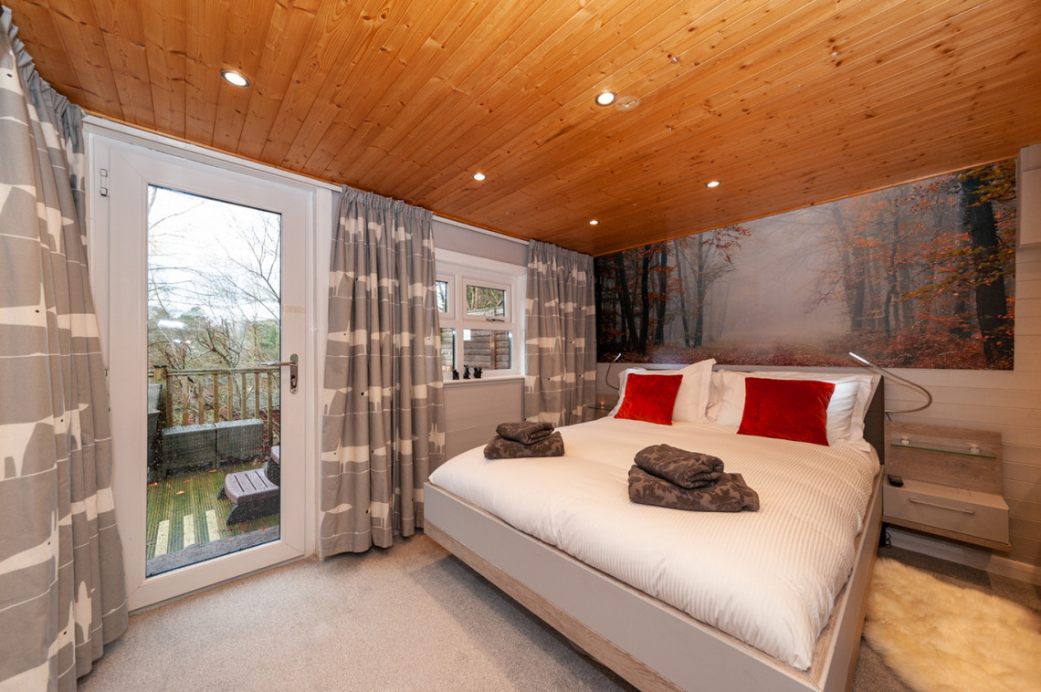 There are 3 bedrooms in the lodge, each is individually decorated and styled and provide the perfect sanctuary at the end of the day to relax and recharge for your next day's adventures. Each bedroom has its own TV/DVD player and each uses Hungarian goose down duvets, adding further to the sense of luxury. There are two rooms which each have 2 single beds and a master bedroom with a fabulous kingsize bed, the master bedroom even has its own door directly onto the decking and the hot tub.