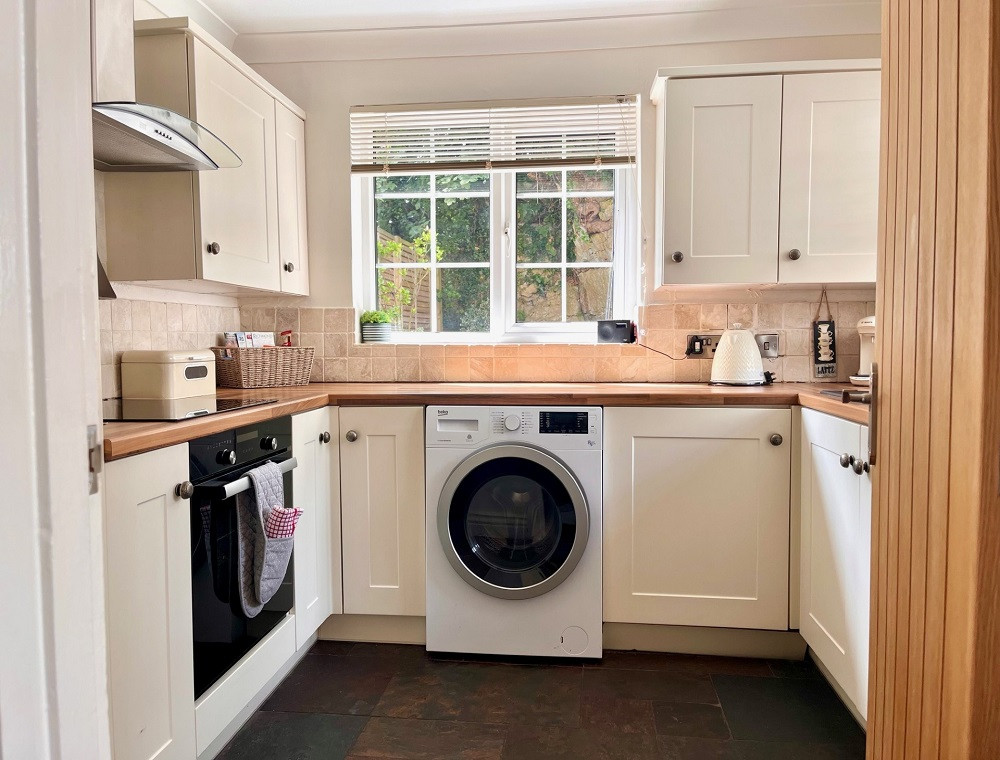Fully equipped kitchen (coffee machine, Upright fridge/freezer for raw dog food, microwave, washer, hob and oven)