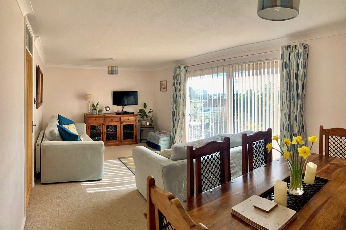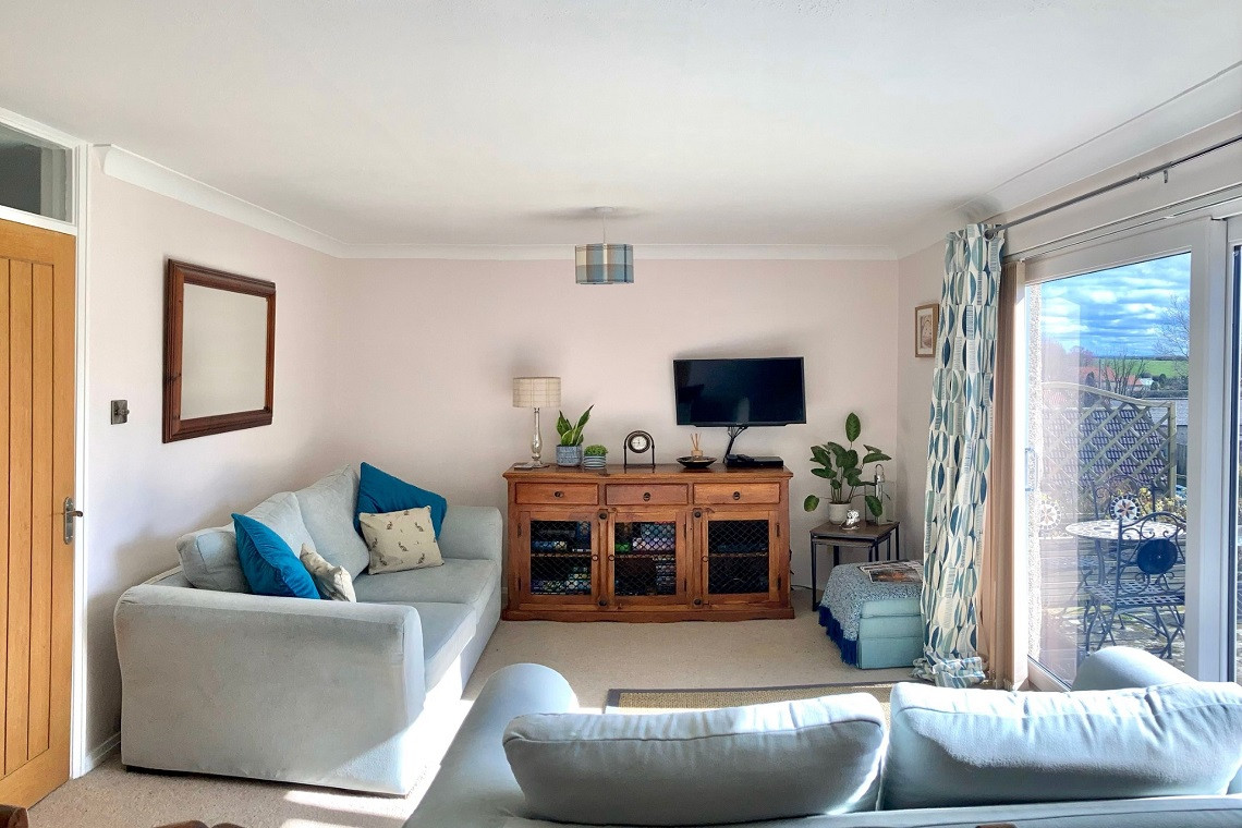 Light, spacious lounge/dining room with countryside views, two comfortable sofas, Sky Tv, board games and books