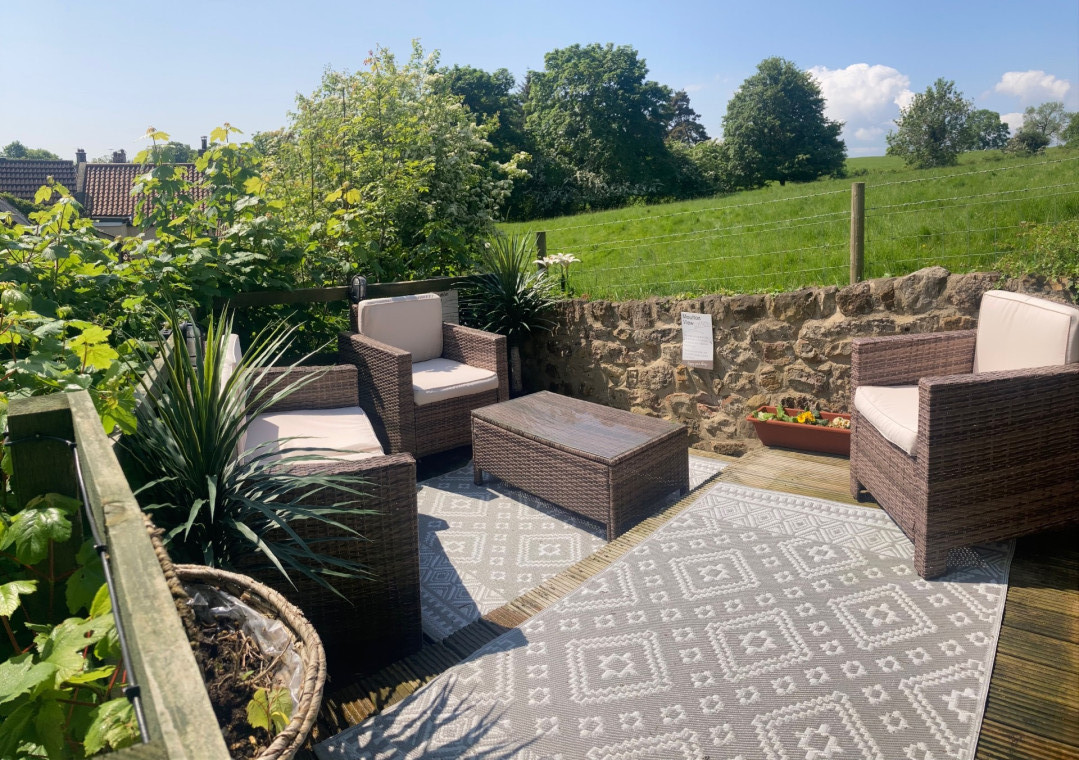 Secret Rooftop terrace garden with rattan seating – amazing sunsets & stargazing over the countryside