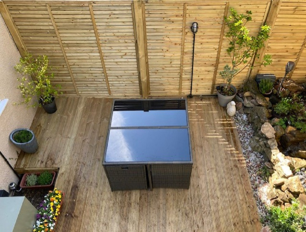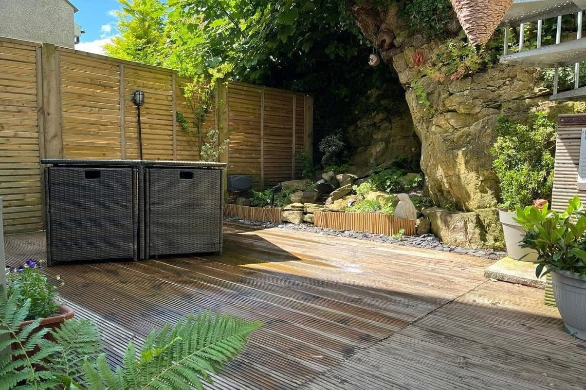 Enclosed lower decked garden with 6ft fence, fully enclosed with lockable gate both inside and outside