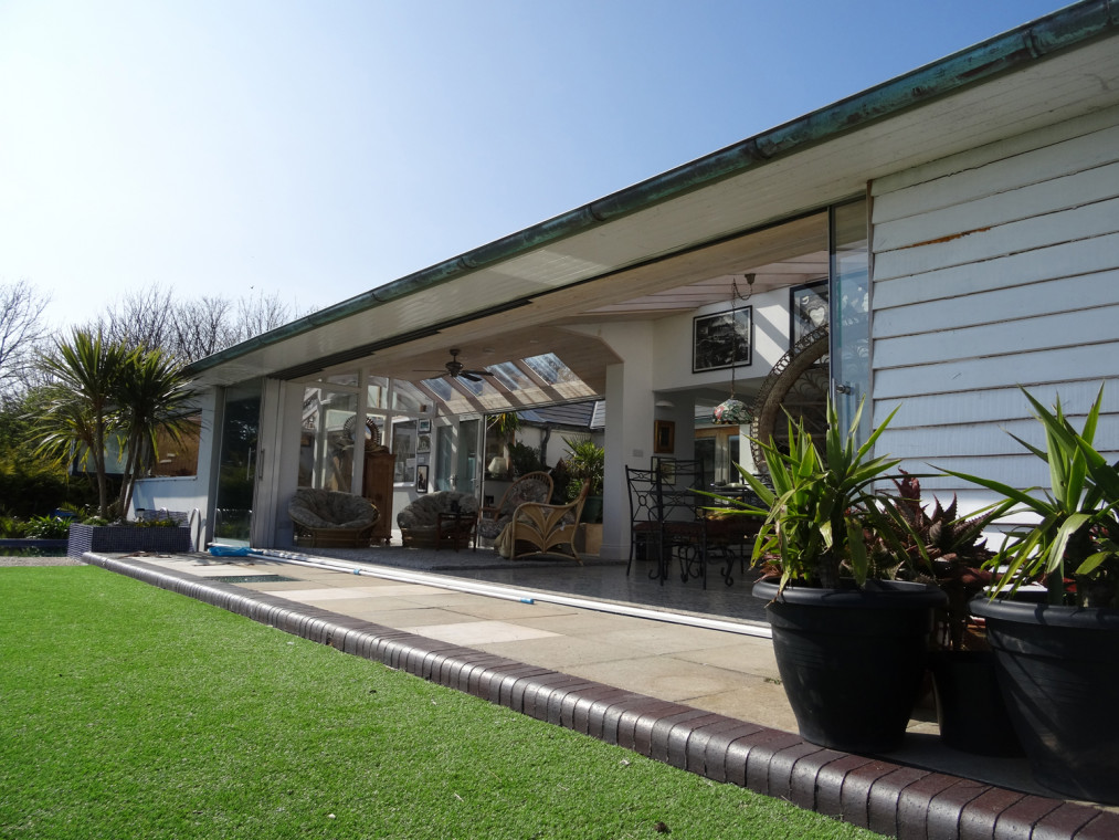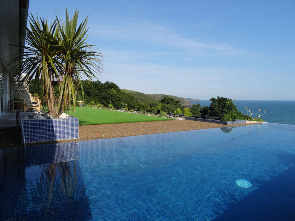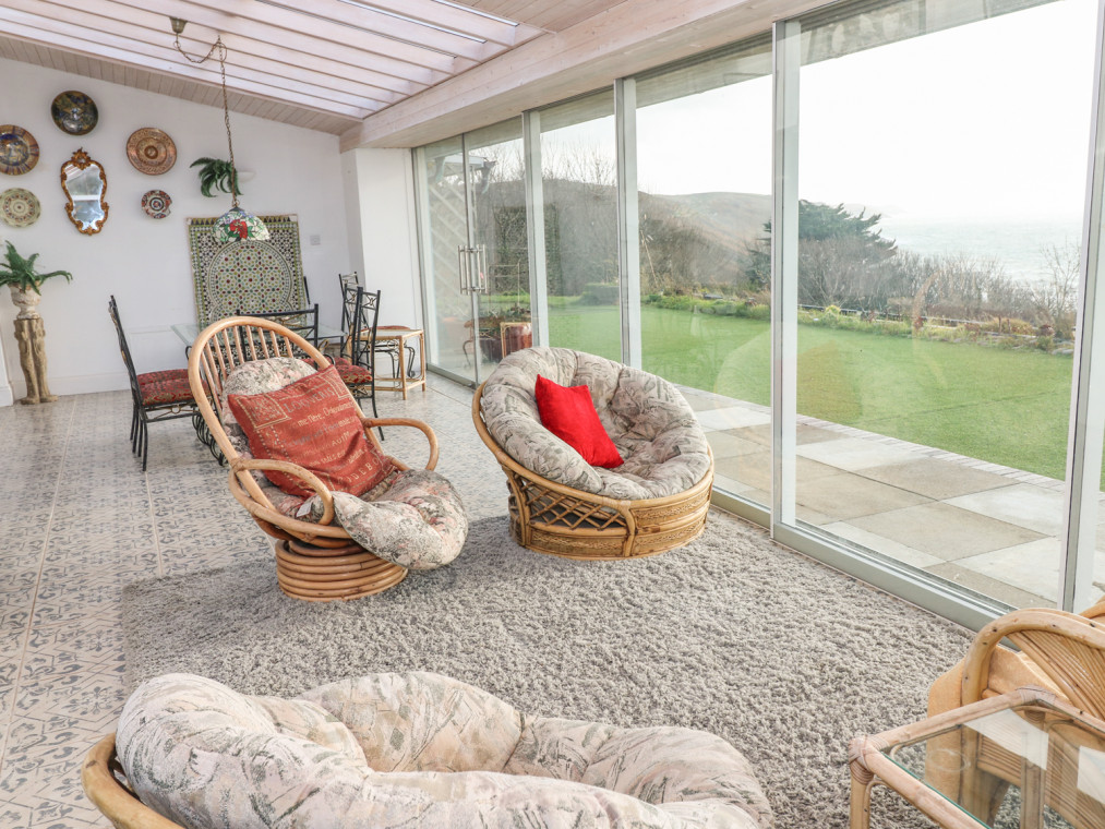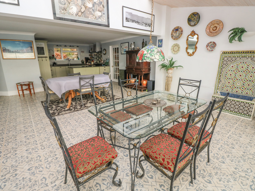 This five bedroom house with two bed guest wing rests in the heart of Pembroke National Park, with coastal views, an infinity pool and a steam room. Perfect for family and friends to come together at once, this retreat originally built in 1920 is a beach chalet welcoming you into its entrance hall, with french doors past the open courtyard, tropical plantings, and remarkable views. An attractive patterned tile floor with the comfort of under floor heating sweeps through to the open-plan, double aspect L-shaped living area. The apartment bedrooms are beautifully styled with comfortable en-suites, while the ground floor bedrooms are more traditional. The master bedroom boasts an en-suite with sea views and its own private lounge with a guest day bed offering the best view in the house! The single captains bedroom features an en-suite with a magical infinity bath under a glazed roof with probably the best views down the coast of any bathroom, anywhere! This area has pool steps leading down into the (exterior) swimming pool from inside the house and a staircase down to the lower ground level apartment. There are an abundance of seating areas including a casual dining arrangement as well as a more formal layout. The frameless door, in fact the whole wall of the glazed sun room, disappears into pockets and brings you out onto grass decked area, putting green and infinity pool with the most breathtaking views over Freshwater Bay. Access onto the front garden is attractively landscaped with Mediterranean planting, mature trees and shrubs, with the sea facing garden showcasing patios on two levels, a Boules pitch, a private path winding down through a wildflower meadow owned by the National Parks leading directly to the Freshwater East Beach. Situated in a quiet area, popular with walkers and naturalists, stroll east towards remote Swanlake Bay and further to Manorbier to witness the striking red sandstone cliffs, west to Stackpole Quay and on to Barafundle Beach. The bay is broad and wide with a dune backed sandy beach with sheltered rocky sections on the east side. The location is abundant in marine and birdlife, with the dunes behind the beach designated as a local nature reserve called ‘The Burrows’. A precious getaway for all. Six bedrooms. Ground floor: 1 x master bed with sea views, en-suite bath, shower over, basin and WC, private lounge and day bed. 1 x double with its own private bath, shower, basin and WC. 1 x twin with en-suite shower, basin and WC. 1 x den/TV room/bedroom with en-suite shower, basin and WC. 1 x single bedroom with captains bed with sea views and en-suite with infinity bath, basin and WC. Snug sitting room/library with woodburning stove and sea views. Open plan living area/kitchen with sea-views. Utility room with large capacity washer and dryer. Steam room. Lower ground floor: 2 x large double bedrooms with en-suite wet rooms, basin and WC (one en-suite with bath and sea views). Open-plan games room. Amenities for Rental Oil central heating Underfloor heating Steam room - holds 3/4 Swimming pool available all year round but only heated between 1st May- end September Rangemaster 5 burner/griddle cooker, microwave, fridge, washer, dryer, dishwasher TVs with BT YouView, WiFi, selection of books and games Fuel, power and starter pack for fire inc. in rent Bed linen and towels inc. in rent Wide electric gates provide entry to ample parking on a tarmac driveway with carport Patio and grassed deck area, putting green, and infinity pool Sheltered courtyard Pets welcome Sorry, no smoking Shop 1.5 miles away Pub 2 mins walk Note: Plenty of additional storage for sports and seaside kit as well as a small boat Note: No stag/hen or similar Note: Infinity pool is not heated until May Note: No phone signal at the property Note: Access to the property is via poor-conditioned road.