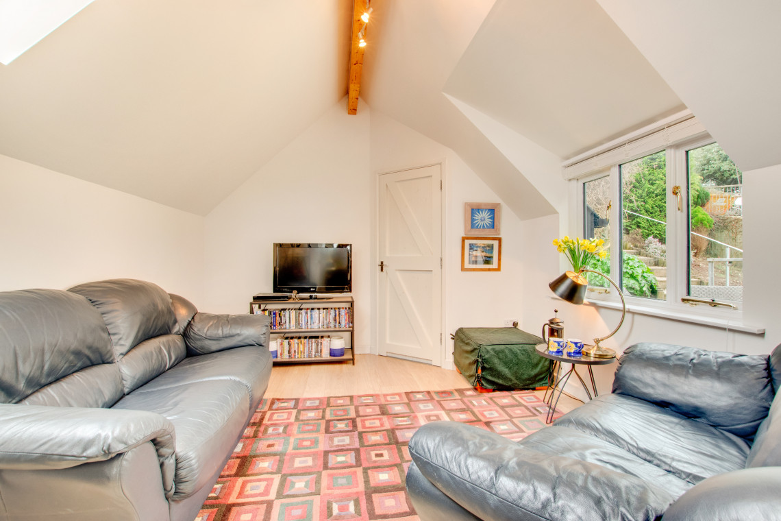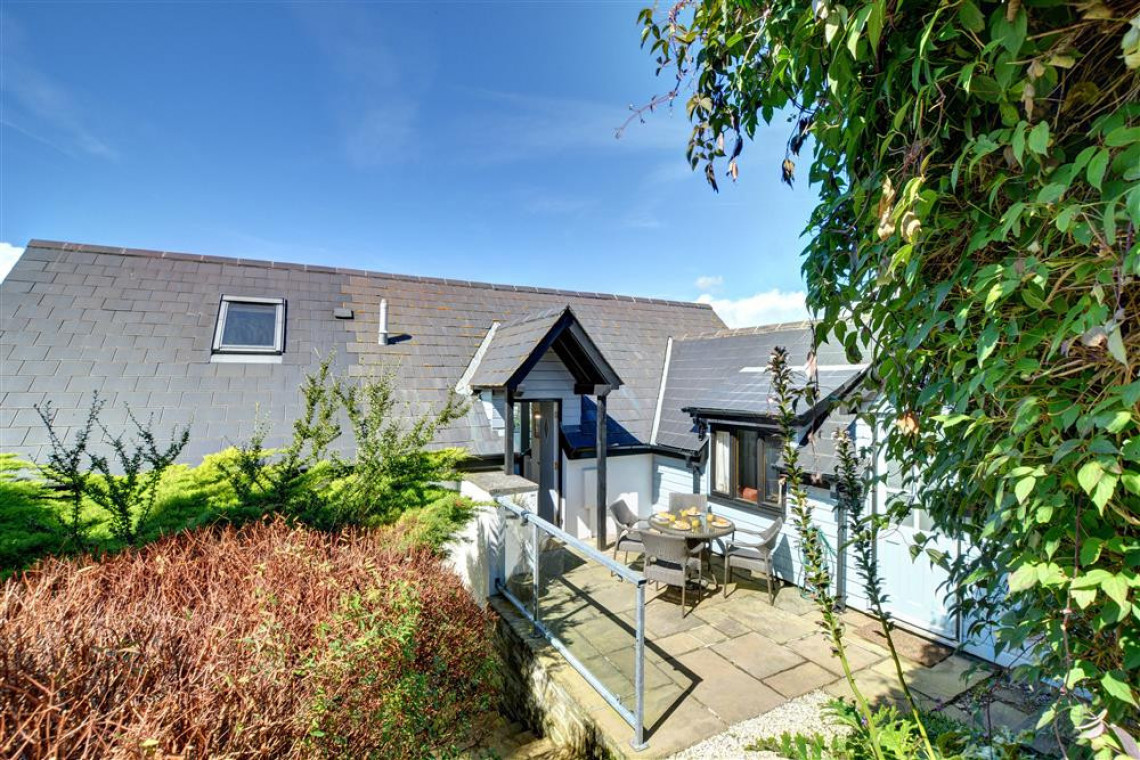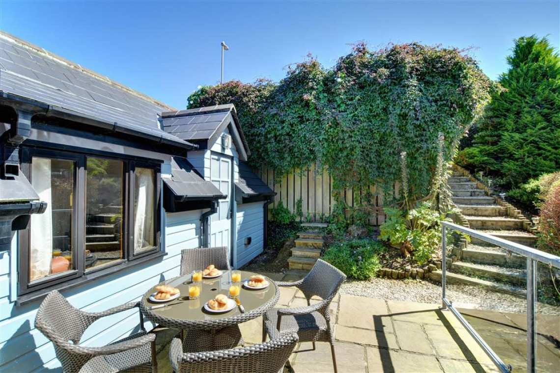 - Outdoors: Private, terraced, enclosed garden with access from front gate to public steps leading to Hall Walk footpath. Paved patio on first floor level with bistro furniture. Outside tap. Gas barbecue on decked area.